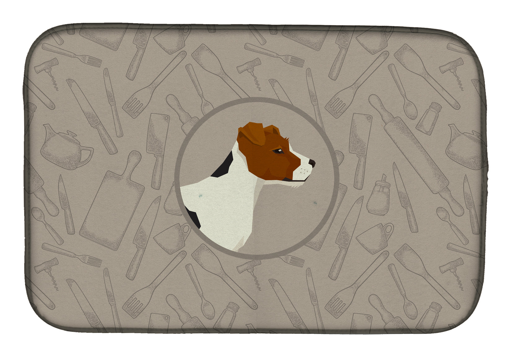 Decorate your space with our Jack Russell Terrier artwork on a Dish Drying Mat. Say goodbye to messy countertops and soggy dish towels with our innovative dish drying mat. Our high-quality dish drying pad is designed to keep your countertops dry while offering a stylish and efficient solution. Whether you're air drying dishes, glasses, stemware, silverware, pots, pans, bottles, or even fruits and vegetables, our dish mat is the perfect choice. The 14 inches x 22 inches size fits most counters and dish drying racks, and the non-slip design ensures stability. Made with water-absorbent polyester and a polyurethane foam insert, our dish drying mat is not only functional but also durable. It's machine washable and printed in the USA for long-lasting use. The beautiful artwork adds flair to your kitchen decor, making it a perfect housewarming gift or present for any occasion. Upgrade your kitchen experience with our absorbent and versatile dish drying mat.