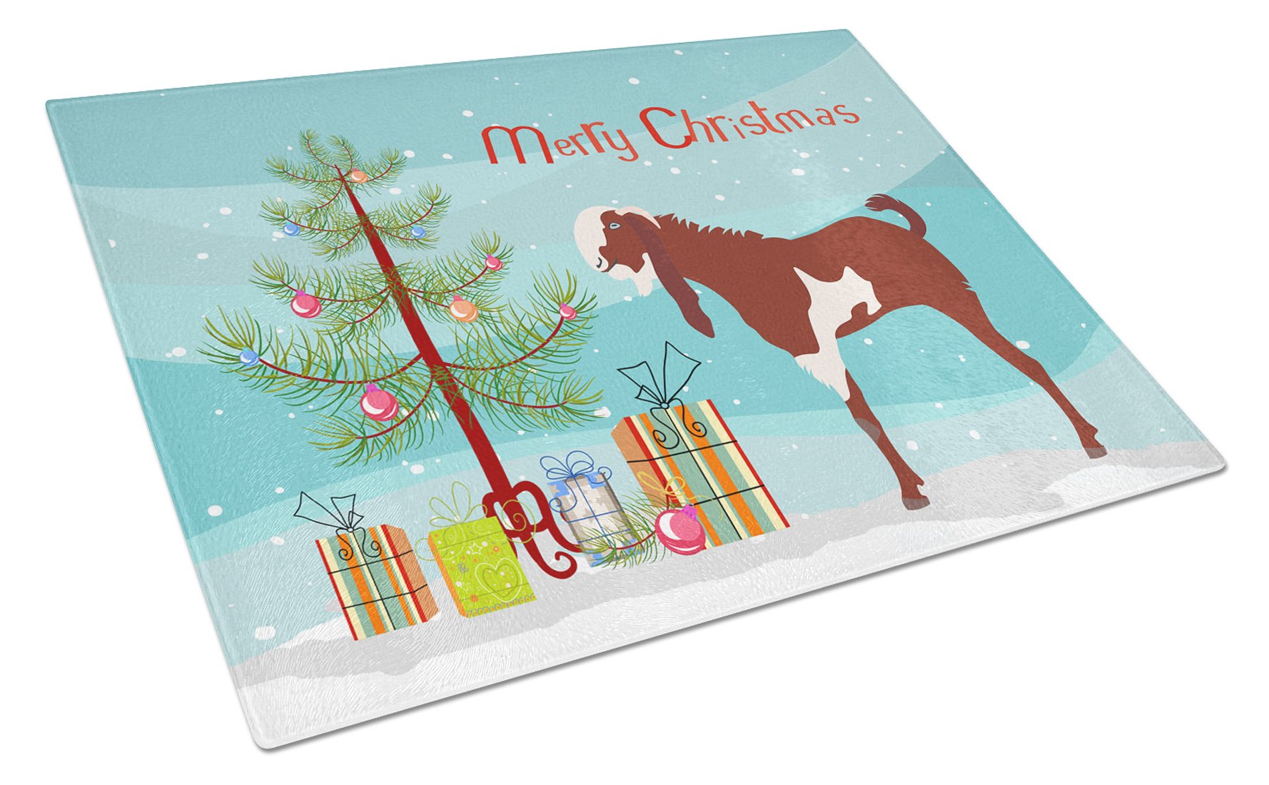 Decorate your space with our Christmas Jamnapari Goat artwork on a Cutting Board. Introduce your kitchen to the vibrant, large Decorative Glass Cutting Board from Caroline's Treasures. Crafted from resilient tempered glass, this board is not only a utilitarian necessity but also a colorful art piece. With its generous dimensions of 15 inches in height and 12 inches in length, it offers ample space for all your cutting needs. Every piece showcases captivating artwork from distinguished artists, bringing an aesthetic edge to your kitchen. Beyond its attractive design, this cutting board ensures your countertop stays pristine and unscathed, owing to its heat-resistant properties. Engineered with user convenience in mind, it features non-skid feet for stability, and rounded corners for additional safety. Its robust construction renders it virtually unbreakable, guaranteeing longevity. The board comes with protective feet bumpers, maintaining its position during use. This product is recommended to be hand washed only. Proudly printed and assembled in the United States, this cutting board exemplifies superior craftsmanship. With Caroline's Treasures' Decorative Glass Cutting Board, you're investing in a blend of functionality and artistic flair.