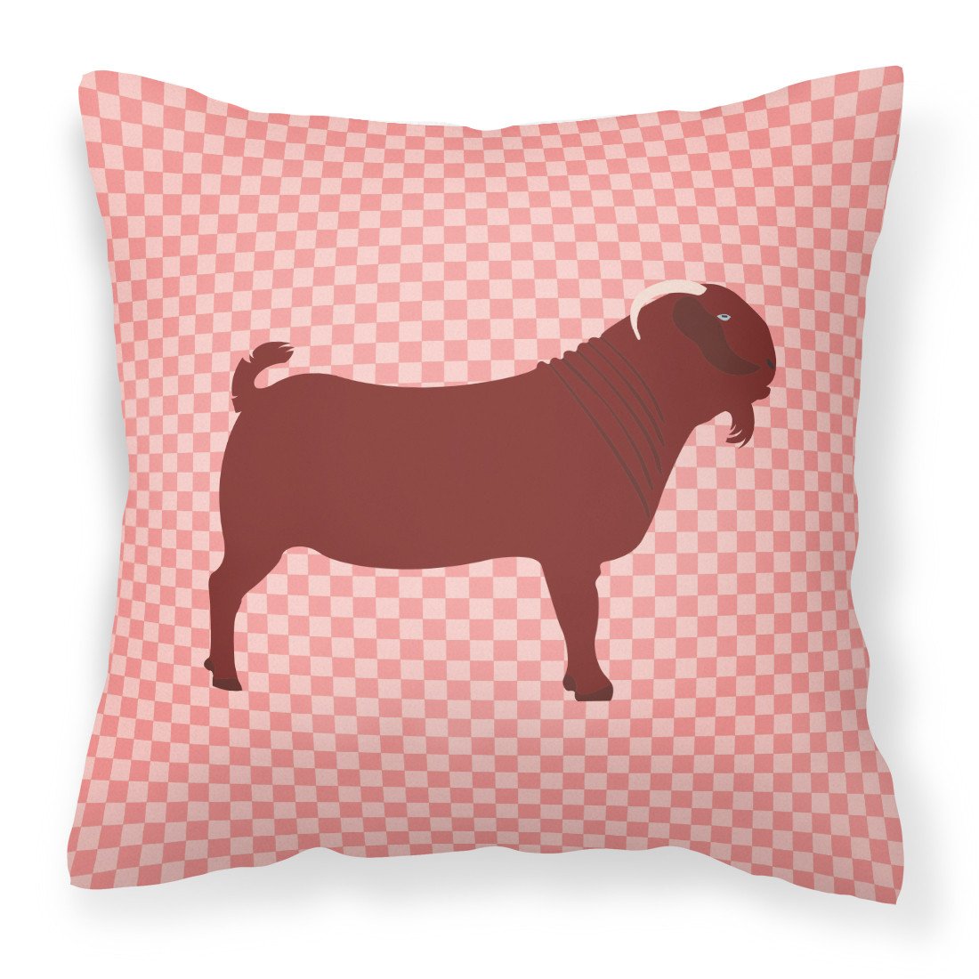 Decorate your space with our Kalahari Red Goat artwork on a Pillow. Revitalize your outdoor or indoor living space with Caroline's Treasures 18x18 Fabric Decorative Pillow. With a generously sized dimension of approximately 18 inches by 18 inches, this pillow makes a comfortable and aesthetic addition to any seating area. Made from a unique, water-resistant material developed by Caroline's Treasures, the pillow sham is 100% polyester fabric that's durable and ready to weather any condition. Its vibrant, full-color artwork will not fade over time as it is dyed with color-fast dyes. Whether you place it on your patio furniture, porch, veranda, or indoor couch, its soft canvas fabric ensures a cozy experience. The pillow is handcrafted in the United States, featuring a sham created from three pieces of fabric and a polyester insert for enduring shape and overstuffed comfort. Despite being robustly built to endure the outdoors, it is as soft and snug as your favorite indoor cushions. Please note, as all our pillows are handmade, sizes may vary slightly, adding to the charm of this unique decorative item.