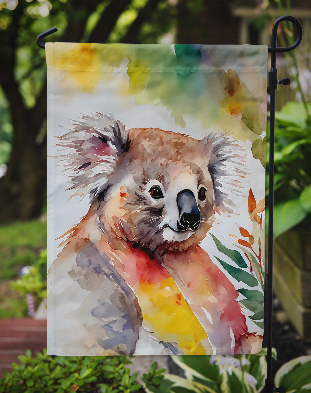 Decorate your space with our Koala artwork on a Garden Flag. Enhance the beauty of your garden, patio, or yard with Caroline's Treasures Decorative Garden Flag, proudly made in the USA. Crafted from two pieces of thick, double-sided polyester fabric, this 2-ply garden flag is designed to withstand various weather conditions, making it water-resistant and weatherproof. Featuring correctly readable words on both sides, this garden flag offers a delightful visual experience from any angle. With its heavier weight, it stands out among other garden flags, ensuring stability and durability even in wind, rain, and snow. Measuring approximately 11 1/4 inches by 15 1/2 inches, this flag allows you to personalize your outdoor decor. It comes with a 1 1/2-inch sleeve sewn in, allowing easy attachment to any standard garden flag stand or garden size porch hanger (sold separately). Make a statement in your outdoor space with Caroline's Treasures Decorative Garden Flag, a vibrant and high-quality flag that adds color and personality to your surroundings. Proudly made in the USA, it's a symbol of quality craftsmanship and attention to detail.