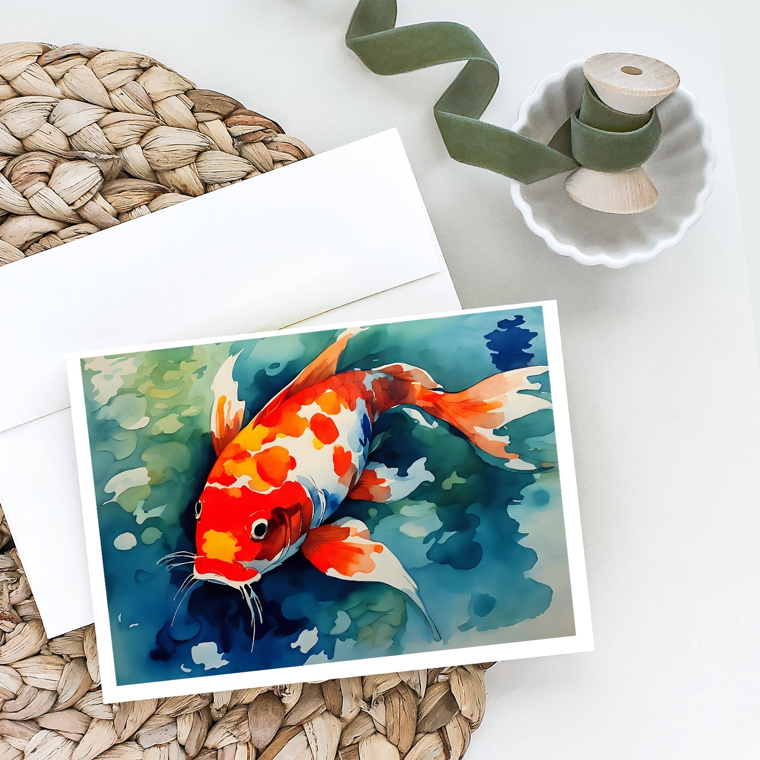 Decorate your space with our Koi Fish artwork on a . Celebrate special moments with Caroline's Treasures Printed Greeting Card Pack. This pack includes eight beautifully folded 5x7 cards, accompanied by eight matching white envelopes. With blank interiors, these cards provide ample space for your personalized messages and heartfelt holiday greetings. Each card features captivating full-color artwork, meticulously printed in our facility on high-quality 80 lb cover stock or 216 GSM. The super smooth finish of the white cards enhances the visual impact of the artwork, creating a truly stunning presentation. Designed by our talented in-house artists or licensed artists, the artwork on these cards showcases their creativity and attention to detail. From vibrant illustrations to captivating designs, each card tells its own unique story. Whether it's for birthdays, anniversaries, holidays, or any special occasion, Caroline's Treasures Greeting Card Pack is the perfect way to convey your heartfelt sentiments. Share joy, love, and warm wishes with these exquisite cards and make every moment unforgettable.