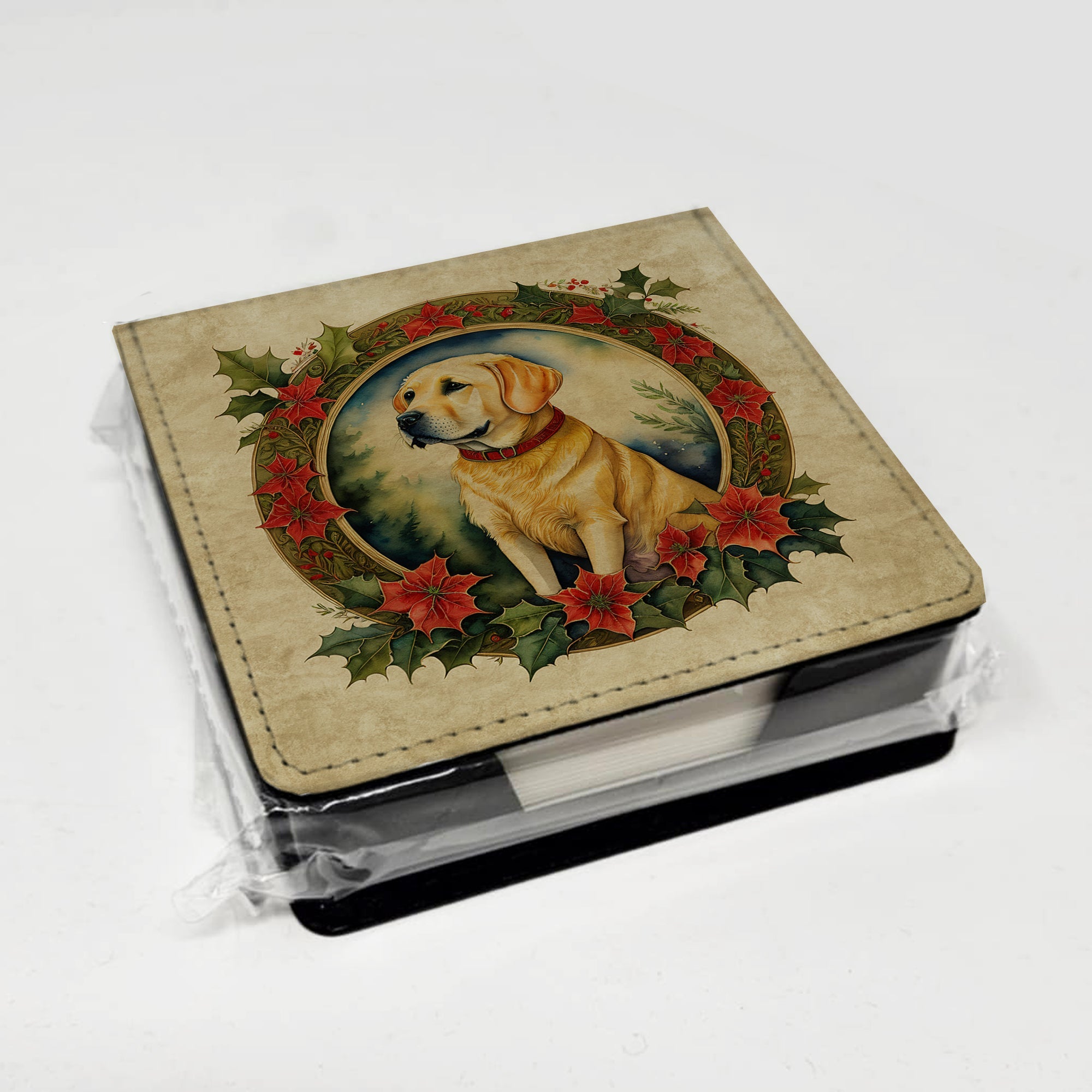 PU Leather Note Paper Holder featuring breed specific Labrador Retriever artwork. Celebrate Christmas with this Christmas Note Paper Holder. Elevate your workspace with this PU Leather Note Paper Holder, crafted to resemble luxurious leather without the use of animal products. Made from durable synthetic PU leather, it offers both a premium look and eco-friendly appeal. This note holder, compactly sized at 4.25 x 4.25 x 1.25 inches, includes about 160 sheets of 3.75 x 3.75-inch note paper—ideal for quick notes and reminders. An exclusive artist-designed cover makes each holder uniquely vibrant, adding a splash of color and personality to any desk or office. The discrete design keeps note paper hidden, maintaining a neat and organized workspace. Perfect as a gift or for personal use, this stylish holder is refillable with standard paper, ensuring long-lasting utility. A must-have for anyone seeking a sophisticated, artful touch to their workspace while supporting animal-friendly products. Add style, organization, and creativity to your everyday routine with this elegant note paper holder.