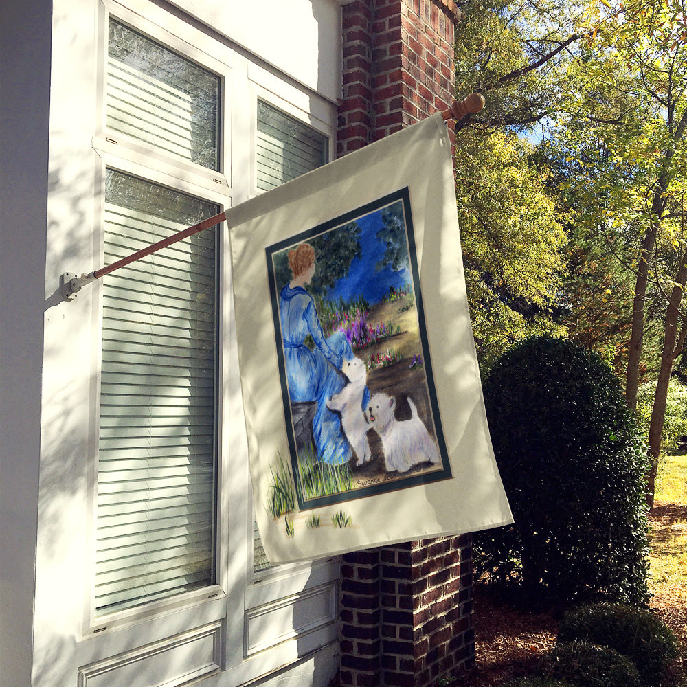 Lady with her  Westie Flag Canvas House Size