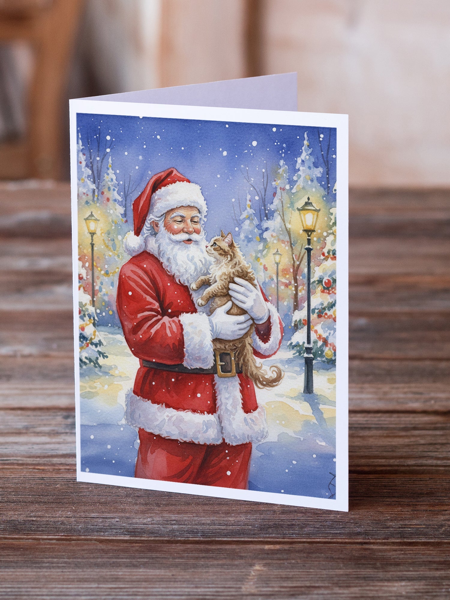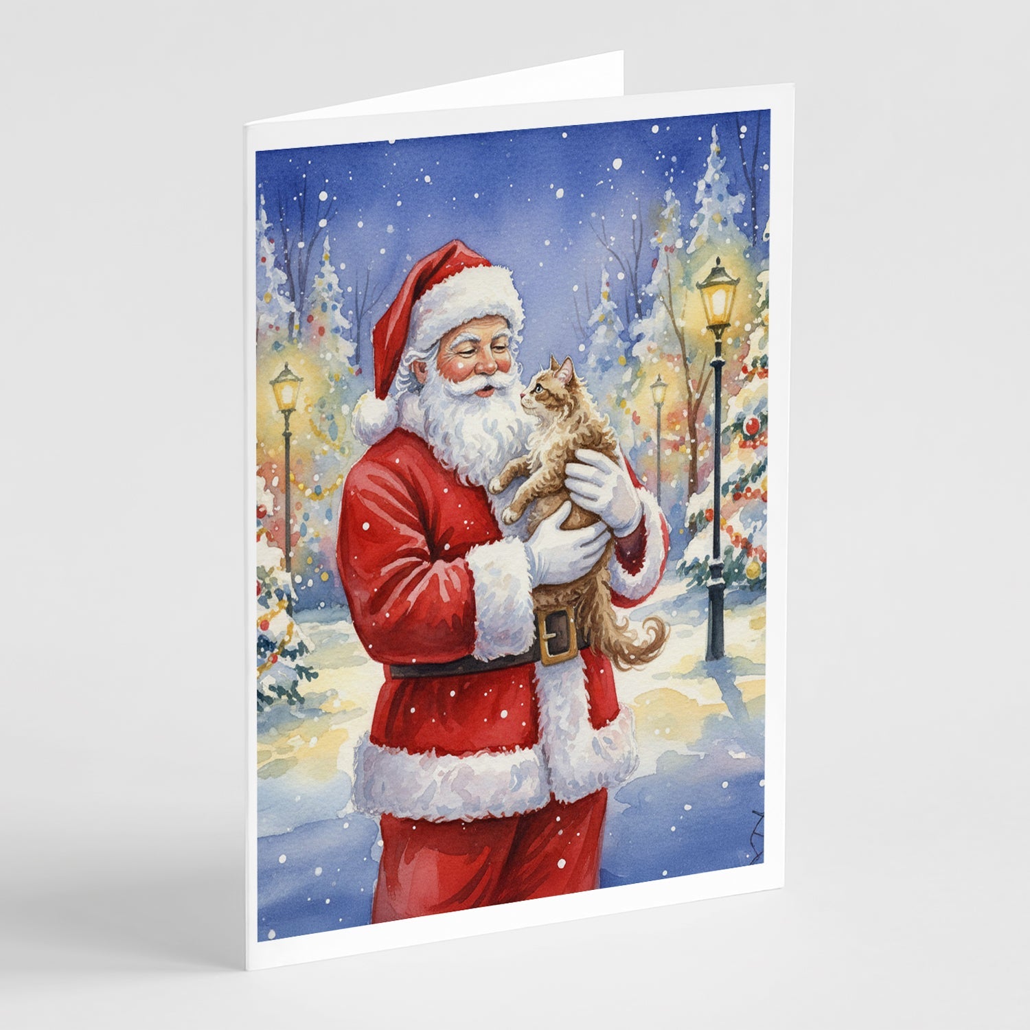 Greeting Cards Pack of 8 featuring breed specific LaPerm Cat artwork. Celebrate Christmas with this Christmas . Celebrate special moments with Caroline's Treasures Printed Greeting Card Pack. This pack includes eight beautifully folded 5x7 cards, accompanied by eight matching white envelopes. With blank interiors, these cards provide ample space for your personalized messages and heartfelt holiday greetings. Each card features captivating full-color artwork, meticulously printed in our facility on high-quality 80 lb cover stock or 216 GSM. The super smooth finish of the white cards enhances the visual impact of the artwork, creating a truly stunning presentation. Designed by our talented in-house artists or licensed artists, the artwork on these cards showcases their creativity and attention to detail. From vibrant illustrations to captivating designs, each card tells its own unique story. Whether it's for birthdays, anniversaries, holidays, or any special occasion, Caroline's Treasures Greeting Card Pack is the perfect way to convey your heartfelt sentiments. Share joy, love, and warm wishes with these exquisite cards and make every moment unforgettable.