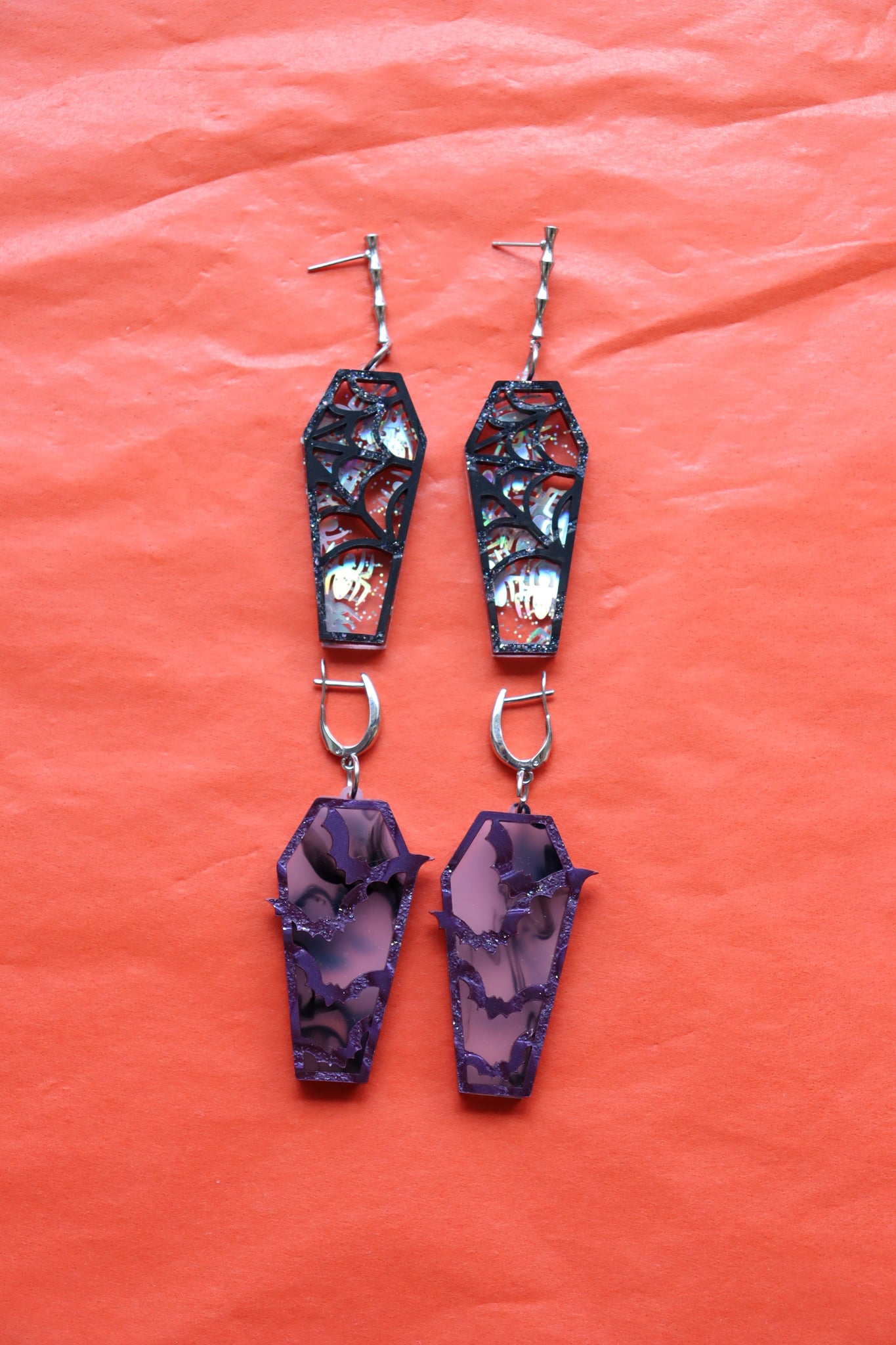 Choose between spider web or bat earrings