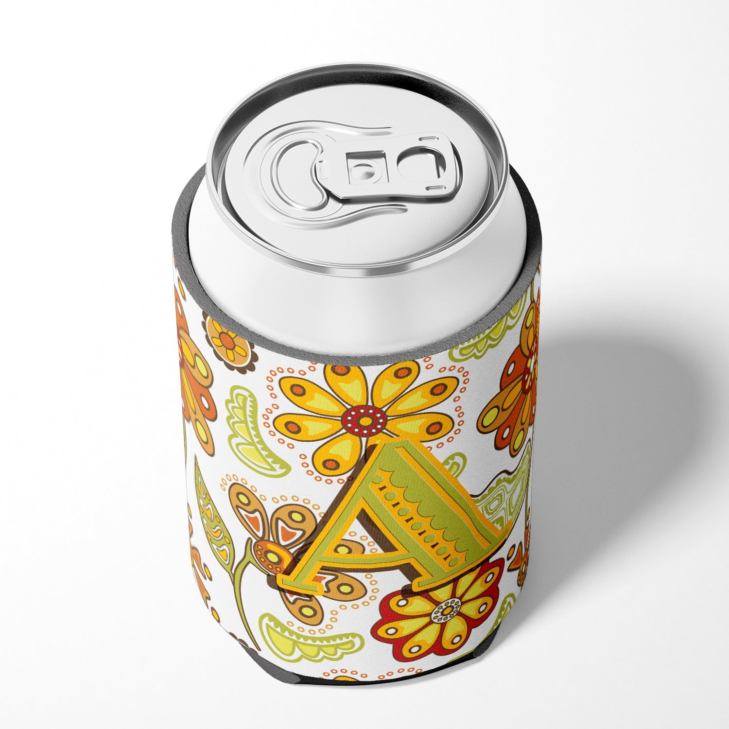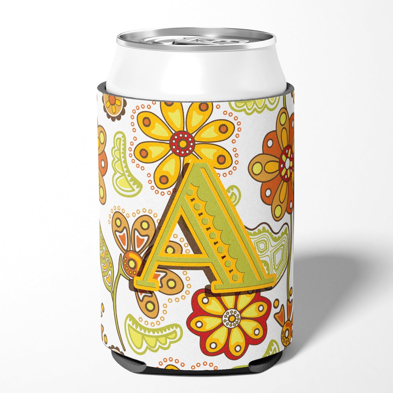 Letter A Floral Mustard and Green Can or Bottle Hugger CJ2003-ACC