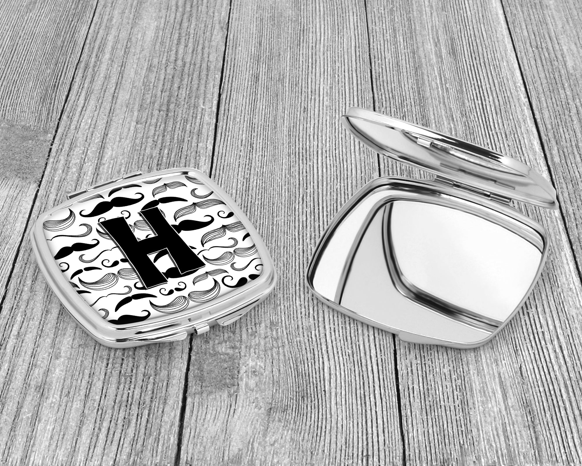 Letter H Moustache Initial Compact Mirror – Stylish Purse Mirror with Artistic Covers CJ2009-HSCM
