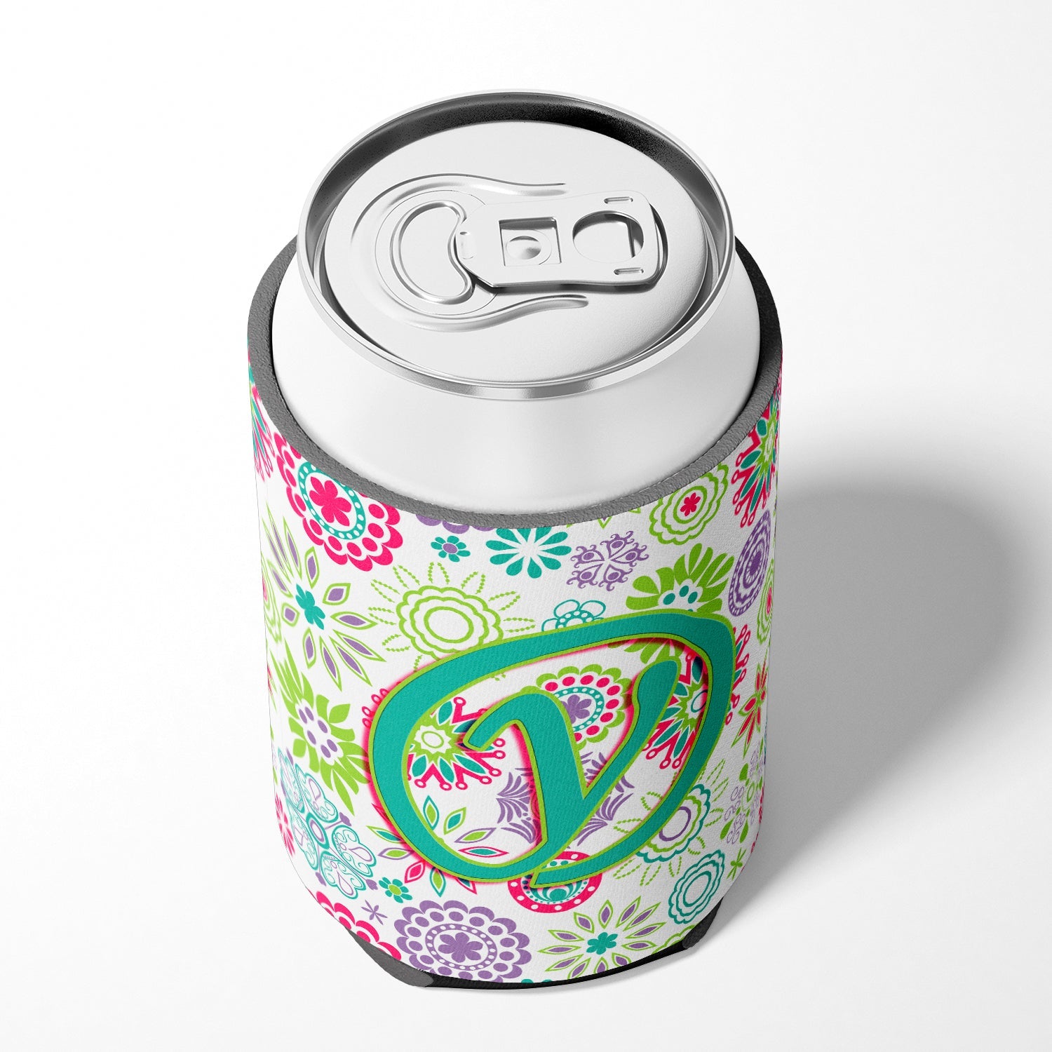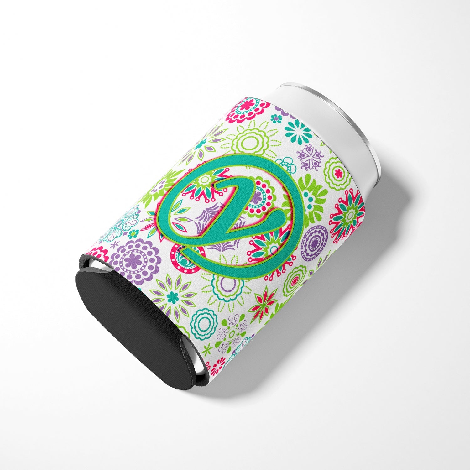 Letter Y Flowers Pink Teal Green Initial Can or Bottle Hugger CJ2011-YCC