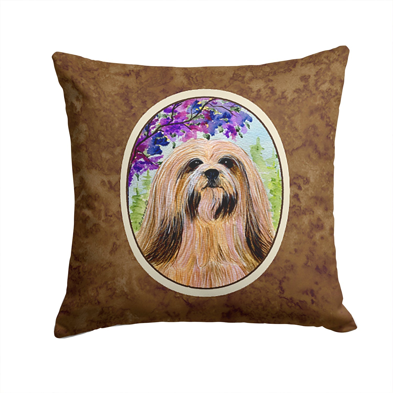 Decorate your space with our Lhasa Apso artwork on a Pillow. Add a touch of vibrancy and comfort to your outdoor seating with Caroline's Treasures Fabric Decorative Pillow. Measuring approximately 14 inches by 14 inches, this outdoor pillow is crafted to elevate the appeal of your patio furniture, infusing it with vivid color and artistic flair. The pillow includes a 100% Polyester Fabric sham filled with a quality pillow form to provide superior comfort. Innovatively made from our brand new material, specifically woven for its water resistance, this pillow is designed for durability. The soft canvas fabric offers versatility in use, fit for your indoor couch or your outdoor patio, porch, or veranda. The fabric is dyed with colorfast dyes built for resilience against weather conditions, ensuring the pillow retains its beauty over time. Constructed by sewing three fabric pieces to create a sham, the polyester insert is then nestled inside to form the pillow, resulting in an overstuffed pillow that maintains its shape. Both the sham and the pillow insert are proudly made in the United States. As the pillows are handcrafted, there may be minor variations in size, further enhancing their unique charm. Experience comfort in style with Caroline's Treasures Fabric Decorative Pillow.
