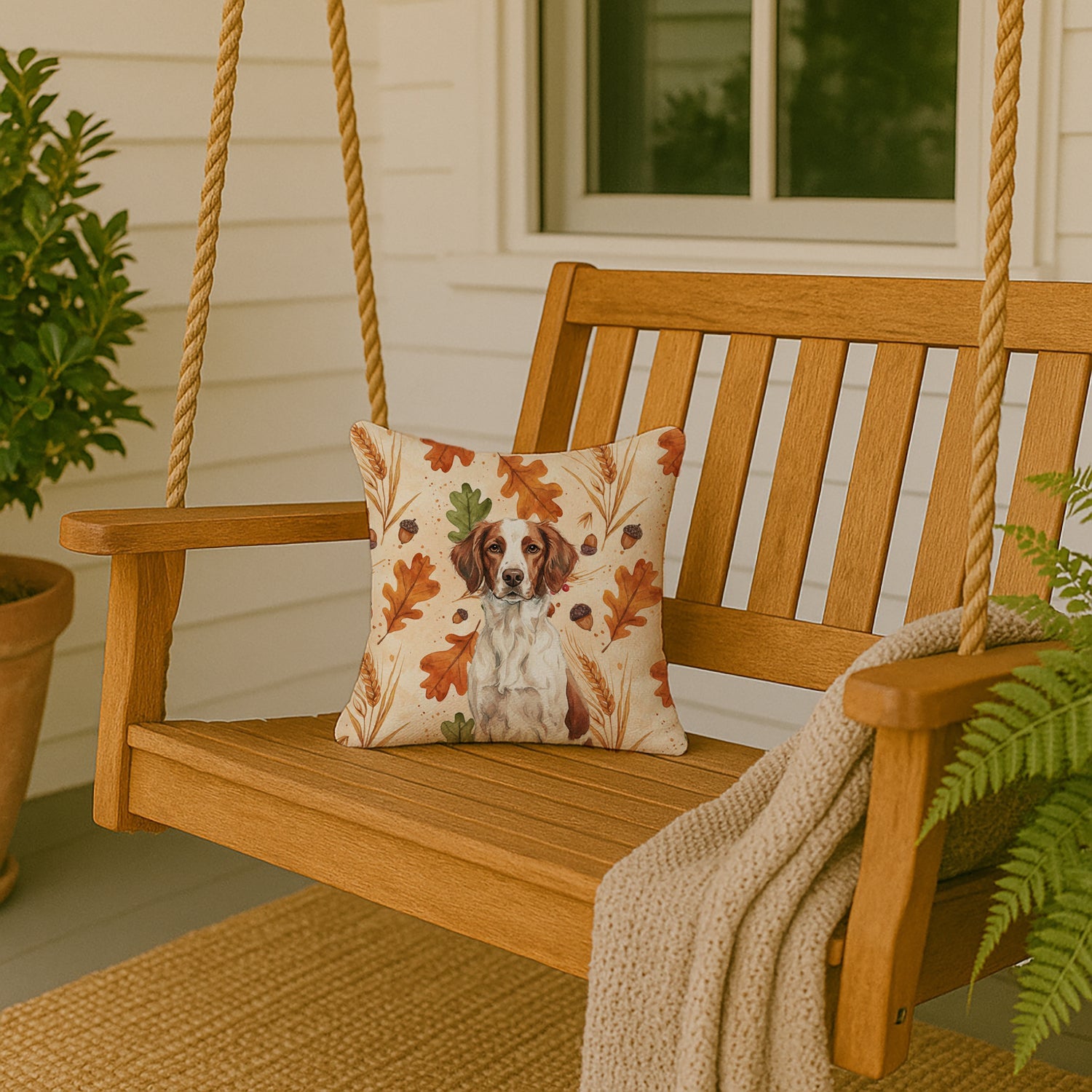 Throw Pillow featuring breed specific Brittany artwork. Celebrate Thanksgiving with this Thanksgiving Pillow. Add a touch of vibrancy and comfort to your outdoor seating with Caroline's Treasures Fabric Decorative Pillow. Measuring approximately 14 inches by 14 inches, this outdoor pillow is crafted to elevate the appeal of your patio furniture, infusing it with vivid color and artistic flair. The pillow includes a 100% Polyester Fabric sham filled with a quality pillow form to provide superior comfort. Innovatively made from our brand new material, specifically woven for its water resistance, this pillow is designed for durability. The soft canvas fabric offers versatility in use, fit for your indoor couch or your outdoor patio, porch, or veranda. The fabric is dyed with colorfast dyes built for resilience against weather conditions, ensuring the pillow retains its beauty over time. Constructed by sewing three fabric pieces to create a sham, the polyester insert is then nestled inside to form the pillow, resulting in an overstuffed pillow that maintains its shape. Both the sham and the pillow insert are proudly made in the United States. As the pillows are handcrafted, there may be minor variations in size, further enhancing their unique charm. Experience comfort in style with Caroline's Treasures Fabric Decorative Pillow.