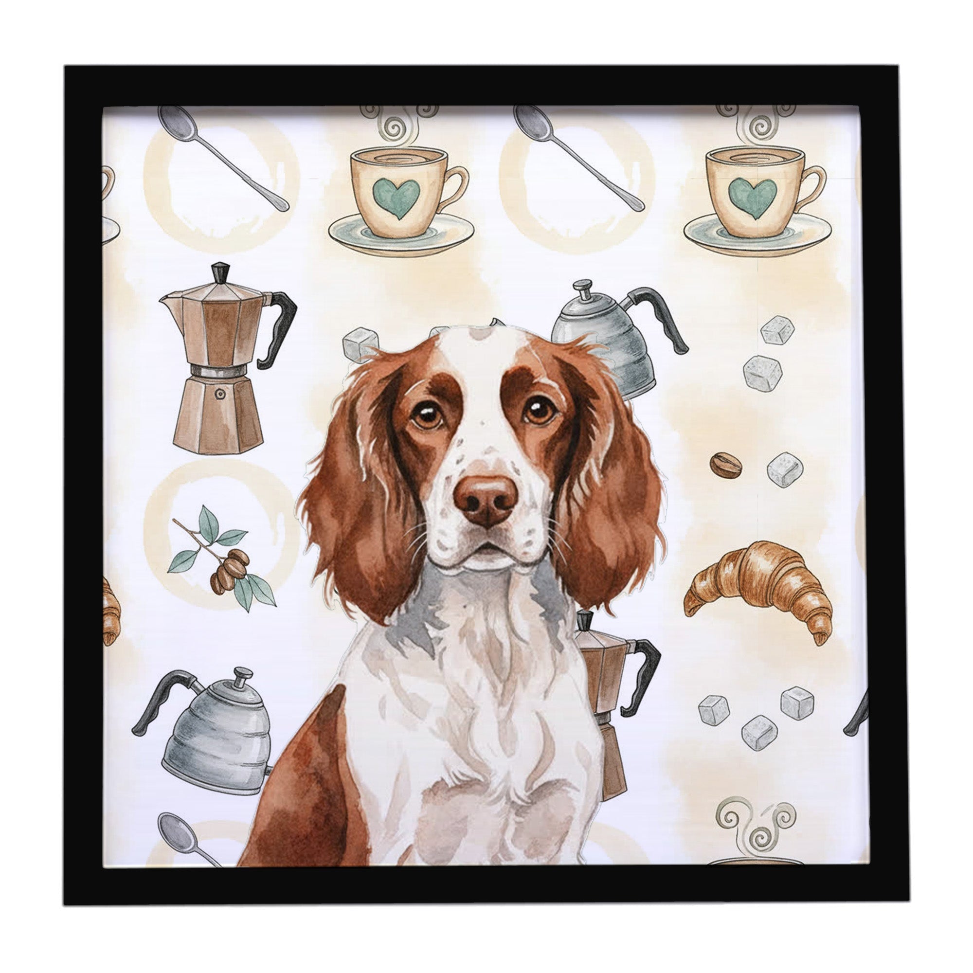 Framed Metal Print featuring breed specific English Springer Spaniel artwork. Looking for wall art that’s stylish, safe, and made to last? Our 8x8 Framed Metal Prints are designed with modern living in mind. Each piece features original artwork printed on durable aluminum, set in a sleek frame that measures 3/4 inch deep for a clean, contemporary finish. Unlike glass prints, these are lightweight, shatter-free, and family-safe. Perfect for kitchens, bathrooms, or covered porches where traditional décor might not hold up. The built-in sawtooth hanger molded into the back makes it easy to hang right out of the box—just use your own nails or screws. Cleaning is simple too: a quick wipe with a damp cloth and mild soap keeps your artwork looking vibrant. Proudly made in Alabama, every print supports our community of artists while adding personality and charm to your home.
