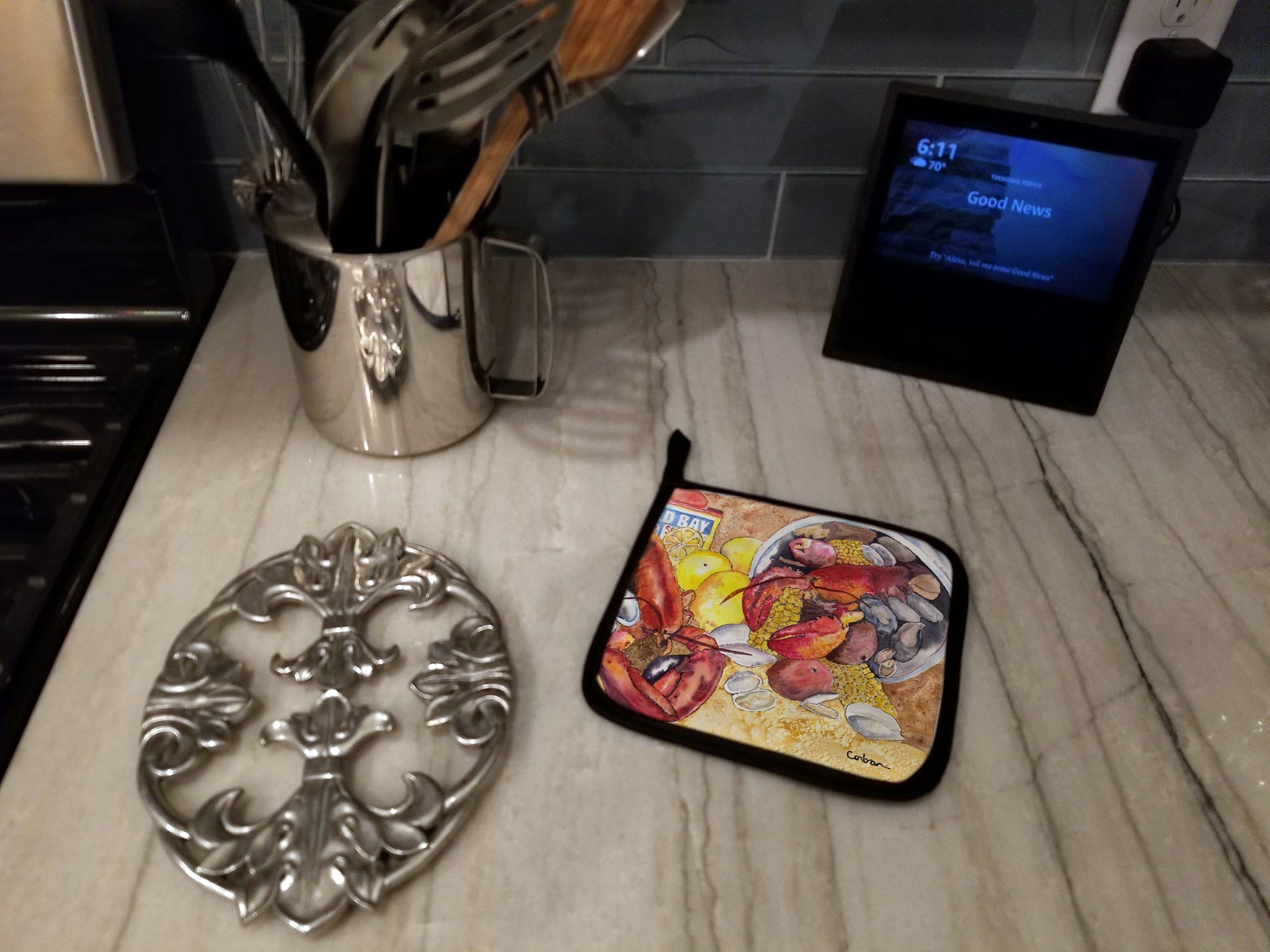 Lobster with Old Bay Pot Holders - Set of 2 Decorative Kitchen Helpers | Made in the USA 8719PTHD