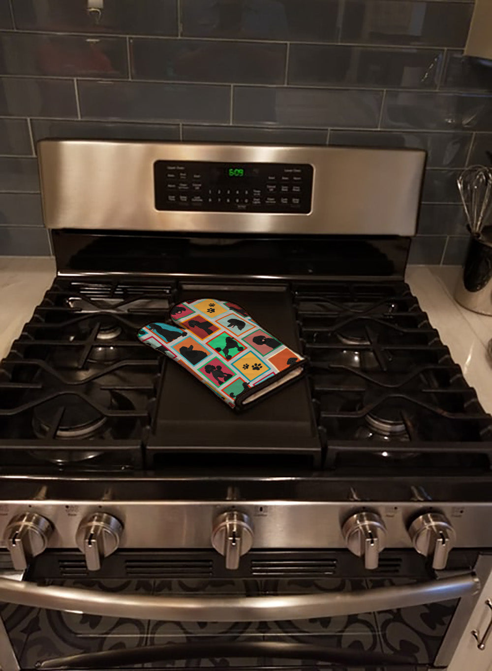 Decorate your space with our Poodle artwork on a Oven Mitt. Presenting our Large Right Hand Thick Heat Resistant Oven Mitt, an indispensable tool for any culinary enthusiast. This mitt boasts layers of quilted protection on both sides, providing outstanding resistance against extreme heat. Embellished with beautifully printed artwork, it adds an extra dash of charm to your kitchen decor. At about 12 inches long and 8 1/2 inches wide, this oven mitt offers a generous fit, accommodating a diverse range of hand sizes. Its design is enhanced by a sleek Black bias tape trim, finished with a convenient hoop for easy hanging. Fresh out of the packaging, the quilting process may give the mitt a stiff feel, but rest assured, it will soften with use and washing. Our mitt is crafted with a unique center fabric, Insul-Bright, a composite material made from polyester fibers, needle-punched through a nonwoven substrate and a reflective metallized film. This smart material resists both conduction and radiant energy, reflecting heat back to its source, all while remaining breathable. Our oven mitt is machine washable and safe for tumble drying. It's a perfect gift for your favorite Chef, BBQ enthusiast, or just a little treat for yourself! Experience safety, style, and convenience rolled into one with this exceptional oven mitt.