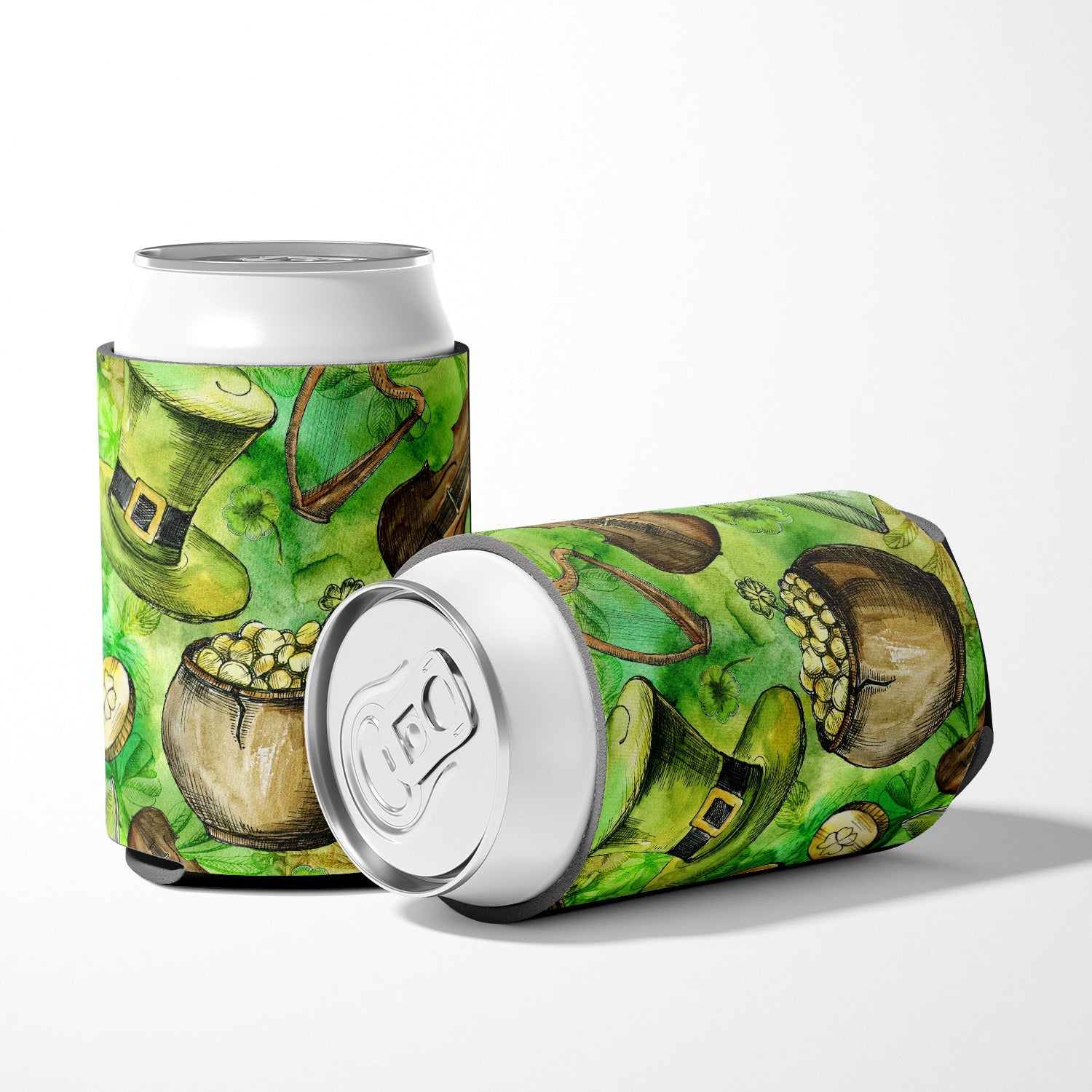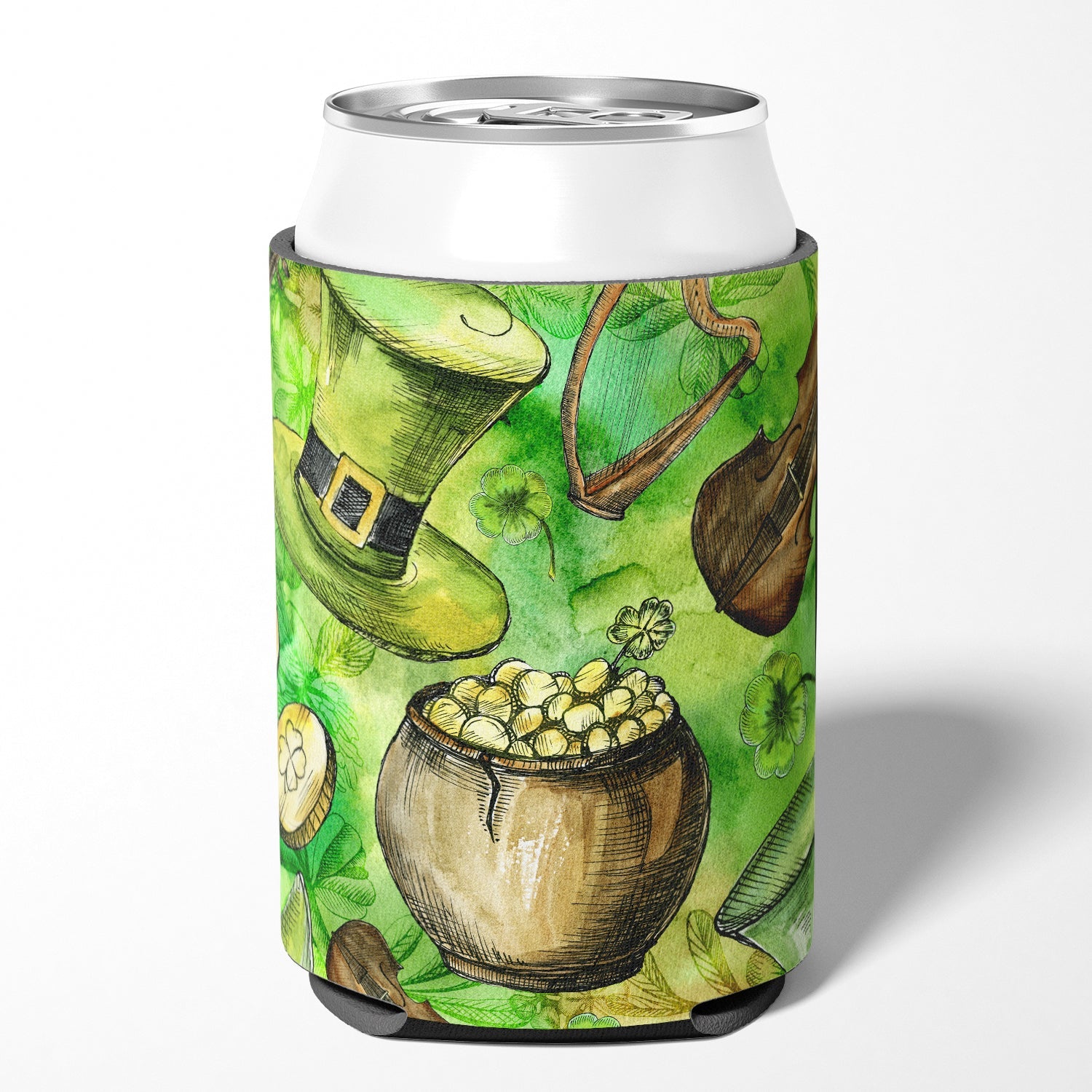 Decorate your space with our St Patrick's Day artwork on a Hugger. Introducing our Can or Bottle Hugger, a must-have accessory for your beverage enjoyment. Designed to perfectly fit any standard 12-ounce can, this can cooler is the ideal companion to keep your soda, beer, or any drink of your choice at the perfect temperature. Our can hugger is not just functional, it's a work of art. Featuring full-color artwork that's permanently dyed into the foam, this hugger promises a design that's fade-resistant and made to last, making your beverage stand out in style. The design isn't silk-screened, which ensures the vibrancy of the colors, offering you a long-lasting, appealing aesthetic. What sets our can hugger apart is its high-quality foam fabric, which is not only durable but also machine washable for easy maintenance. Whether you call it a huggie, can coolie, can cozie, or beer holder, this drink sleeve brings style and function together. Proudly designed, printed, and sewn in the USA, our Can or Bottle Hugger is an ideal addition to your beverage experience. Match it with one of our insulated coolers for a complete gift set, adding flair and convenience to your drink enjoyment.