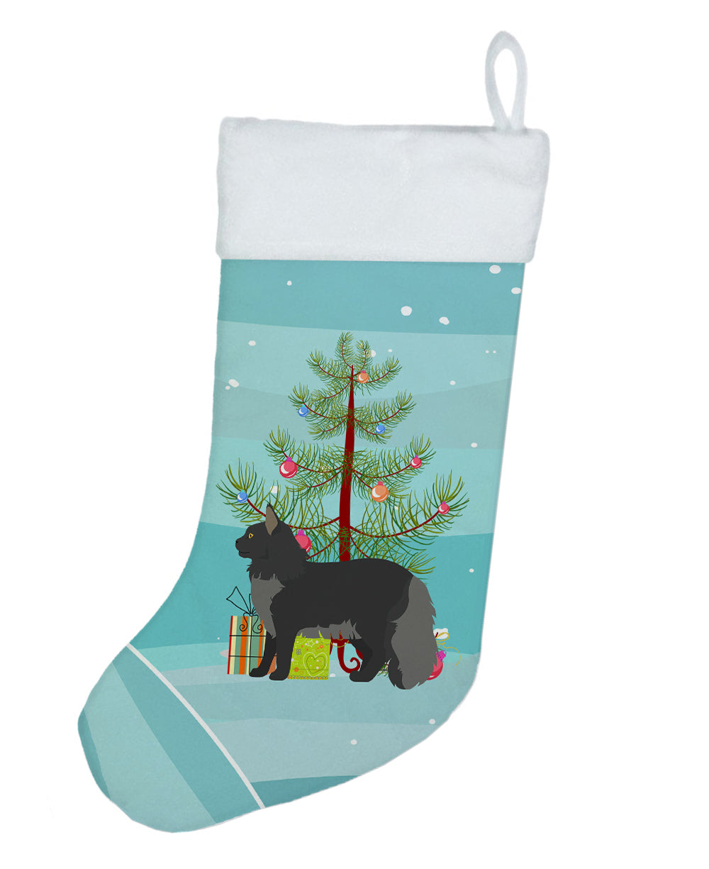 Decorate your space with our Christmas Maine Coon artwork on a Stocking. Bring the warmth of the festive season into your home with our luxurious Christmas Stocking. Designed to impress, this beautiful stocking is crafted from 100% polyester suede, delivering both superior softness and long-lasting durability. Measuring approximately 18 inches in height and 11 inches in width, it boasts generous space for a delightful assortment of Santa's gifts. What sets our Christmas Stocking apart is the exquisite design that is printed on both sides. Whether you hang it on the mantel or from a stocking hanger, the charming holiday print remains visible, adding a festive spirit to your décor from any direction. The stocking features a robust hanging tab that's crafted from the same suede fabric, guaranteeing secure hanging during the holiday excitement. An added bonus? This Christmas Stocking is completely machine washable. After the season's festivities, simply wash it, lay flat or hang to dry, and it's ready for the next holiday season. Proudly designed, printed and sewn in the United States, our stocking makes a stylish addition to your Christmas décor or a thoughtful gift for loved ones. Cherish the spirit of Christmas with our beautifully crafted, double-sided, easy-care stocking.