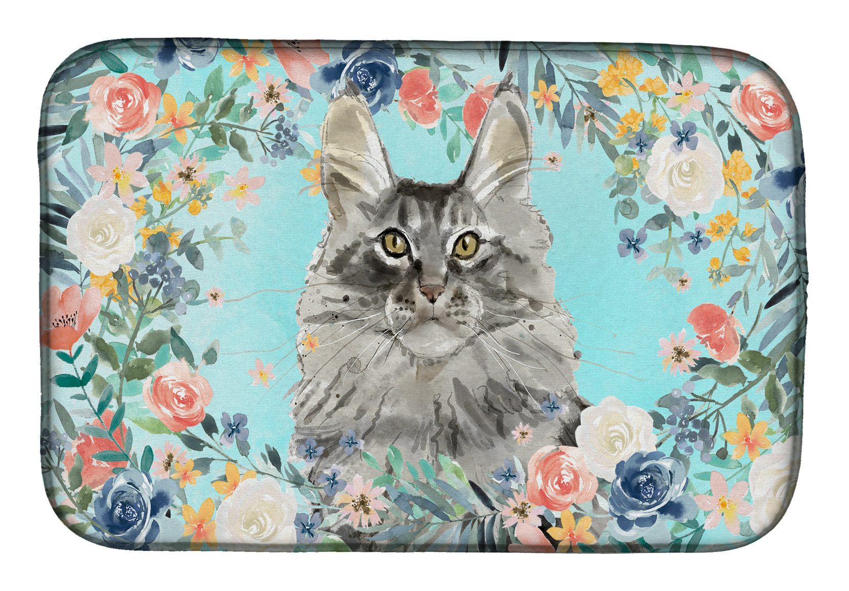 Decorate your space with our Maine Coon artwork on a Dish Drying Mat. Say goodbye to messy countertops and soggy dish towels with our innovative dish drying mat. Our high-quality dish drying pad is designed to keep your countertops dry while offering a stylish and efficient solution. Whether you're air drying dishes, glasses, stemware, silverware, pots, pans, bottles, or even fruits and vegetables, our dish mat is the perfect choice. The 14 inches x 22 inches size fits most counters and dish drying racks, and the non-slip design ensures stability. Made with water-absorbent polyester and a polyurethane foam insert, our dish drying mat is not only functional but also durable. It's machine washable and printed in the USA for long-lasting use. The beautiful artwork adds flair to your kitchen decor, making it a perfect housewarming gift or present for any occasion. Upgrade your kitchen experience with our absorbent and versatile dish drying mat.