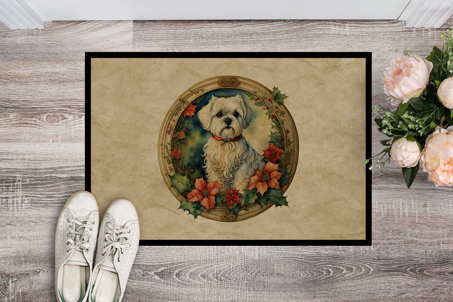 Maltese Christmas Flowers Doormat