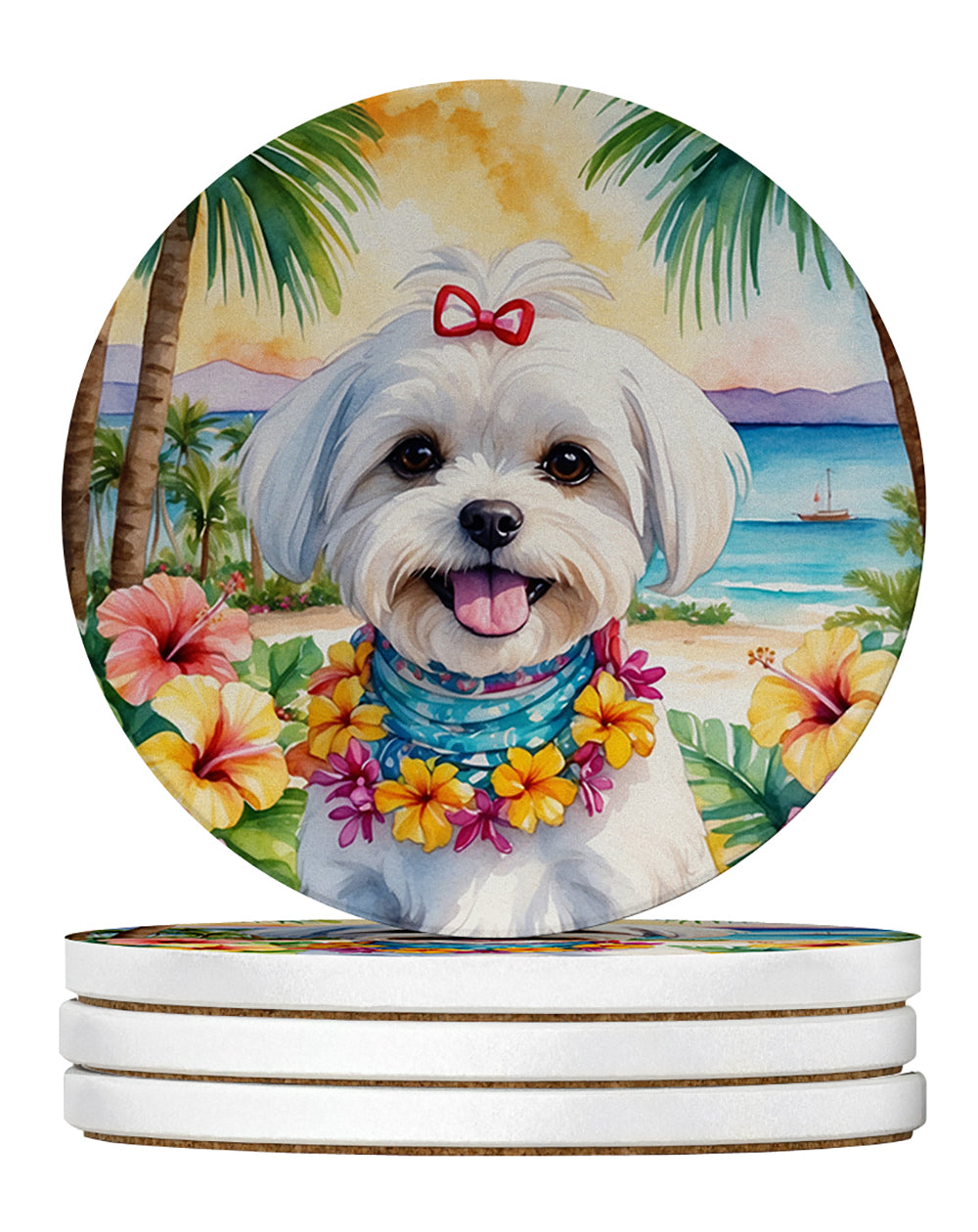 Large Sandstone Coasters Pack of 4 featuring breed specific Maltese artwork. Introducing Caroline's Treasures Large Sandstone Coasters Pack of 4, the perfect addition to your home decor. Each coaster measures nearly 4 inches and is made from absorbent sandstone with a cork backing. Designed and printed in the United States, these coasters feature artwork from Caroline's Treasures' talented artists. Protect your countertops and tables from hot and cold drink condensation with these absorbent coasters. They efficiently absorb moisture, ensuring your surfaces stay dry and clean. Choose from a wide range of designs to update and enhance your decor or give them as a thoughtful gift for any occasion. Cleaning is a breeze—simply wipe the coaster with a damp towel to remove any spills or stains. Each set comes in a brown gift box, making it ready to be wrapped for that special person in your life. These absorbent sandstone coasters also make an excellent housewarming gift, providing both practicality and style. Celebrate birthdays, Mother's Day, Father's Day, Thanksgiving, Christmas, Teacher's Appreciation Day, or simply show someone you care with these versatile and charming coasters. Caroline's Treasures Large Sandstone Coasters Pack of 4 is the perfect happy gift for any occasion.