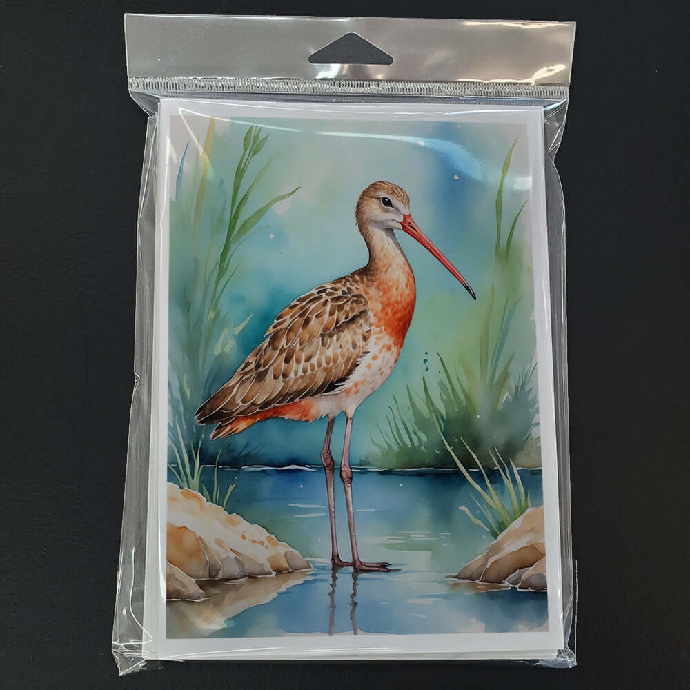 Greeting Cards Pack of 8 featuring breed specific Marbled Godwit artwork. Celebrate special moments with Caroline's Treasures Printed Greeting Card Pack. This pack includes eight beautifully folded 5x7 cards, accompanied by eight matching white envelopes. With blank interiors, these cards provide ample space for your personalized messages and heartfelt holiday greetings. Each card features captivating full-color artwork, meticulously printed in our facility on high-quality 80 lb cover stock or 216 GSM. The super smooth finish of the white cards enhances the visual impact of the artwork, creating a truly stunning presentation. Designed by our talented in-house artists or licensed artists, the artwork on these cards showcases their creativity and attention to detail. From vibrant illustrations to captivating designs, each card tells its own unique story. Whether it's for birthdays, anniversaries, holidays, or any special occasion, Caroline's Treasures Greeting Card Pack is the perfect way to convey your heartfelt sentiments. Share joy, love, and warm wishes with these exquisite cards and make every moment unforgettable.