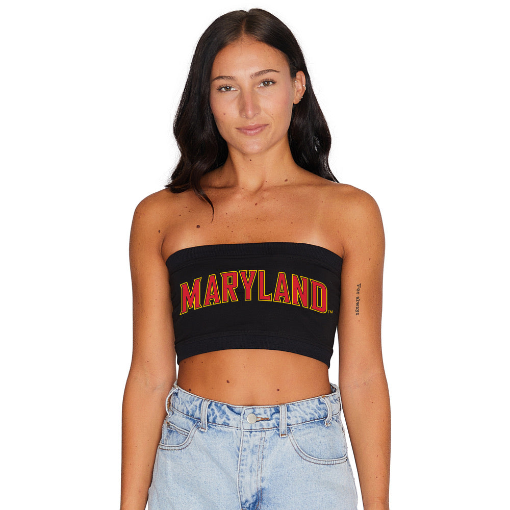 This super flattering UMD Black Bandeau Top is perfect for college game day paired with our Red Tailgate Skirt or our Maryland Terps Tailgate Skirt! Our Maryland Terps White Bandeau Top's stretchy fabric makes it the perfect option for all body types. Go Terps!