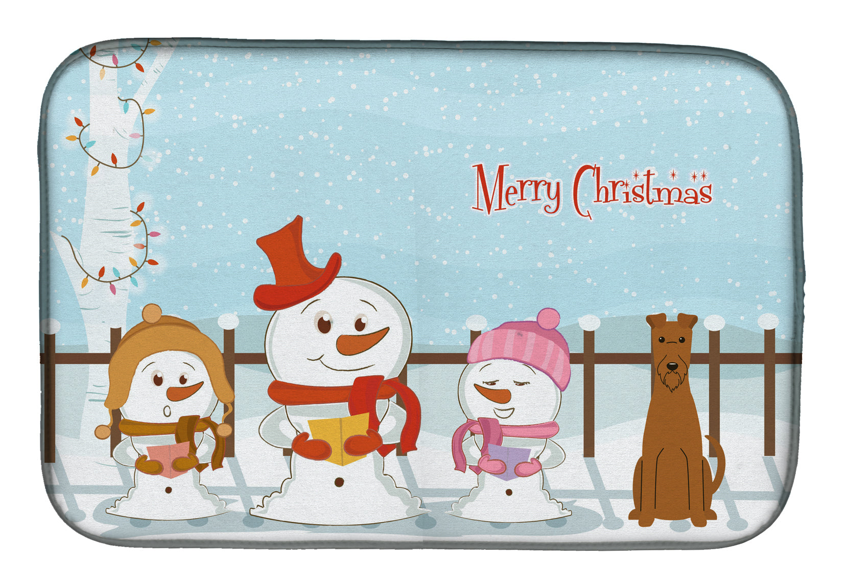 Decorate your space with our Christmas Irish Terrier artwork on a Dish Drying Mat. Say goodbye to messy countertops and soggy dish towels with our innovative dish drying mat. Our high-quality dish drying pad is designed to keep your countertops dry while offering a stylish and efficient solution. Whether you're air drying dishes, glasses, stemware, silverware, pots, pans, bottles, or even fruits and vegetables, our dish mat is the perfect choice. The 14 inches x 22 inches size fits most counters and dish drying racks, and the non-slip design ensures stability. Made with water-absorbent polyester and a polyurethane foam insert, our dish drying mat is not only functional but also durable. It's machine washable and printed in the USA for long-lasting use. The beautiful artwork adds flair to your kitchen decor, making it a perfect housewarming gift or present for any occasion. Upgrade your kitchen experience with our absorbent and versatile dish drying mat.