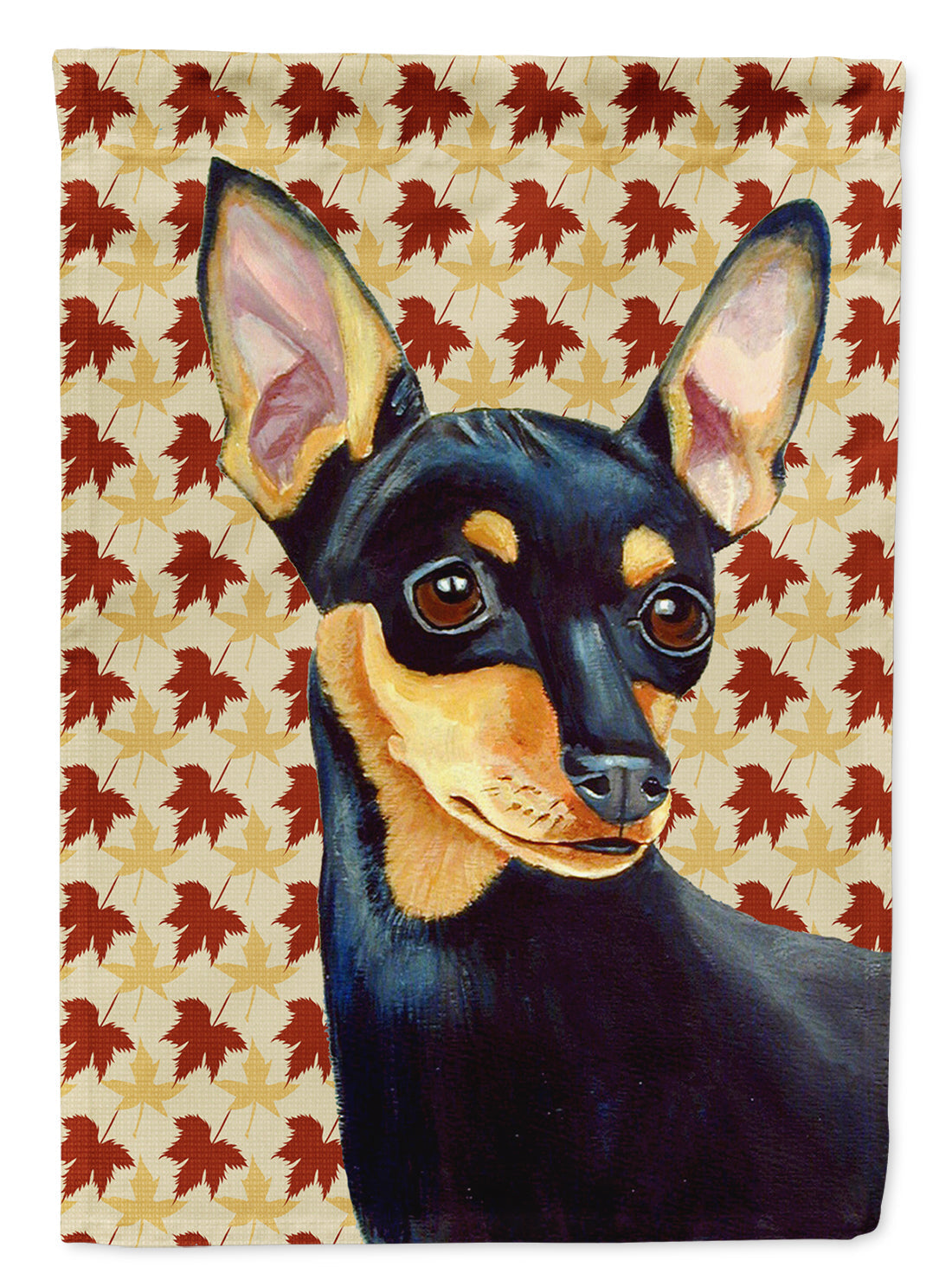 Decorate your space with our Miniature Pinscher artwork on a Garden Flag. Bring a bit of Fall into your home with a Fall Garden Flag. Enhance the beauty of your garden, patio, or yard with Caroline's Treasures Decorative Garden Flag, proudly made in the USA. Crafted from two pieces of thick, double-sided polyester fabric, this 2-ply garden flag is designed to withstand various weather conditions, making it water-resistant and weatherproof. Featuring correctly readable words on both sides, this garden flag offers a delightful visual experience from any angle. With its heavier weight, it stands out among other garden flags, ensuring stability and durability even in wind, rain, and snow. Measuring approximately 11 1/4 inches by 15 1/2 inches, this flag allows you to personalize your outdoor decor. It comes with a 1 1/2-inch sleeve sewn in, allowing easy attachment to any standard garden flag stand or garden size porch hanger (sold separately). Make a statement in your outdoor space with Caroline's Treasures Decorative Garden Flag, a vibrant and high-quality flag that adds color and personality to your surroundings. Proudly made in the USA, it's a symbol of quality craftsmanship and attention to detail.
