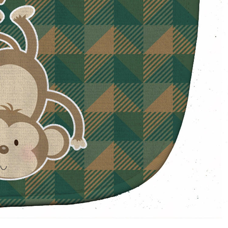 Decorate your space with our Monkey artwork on a Baby Bib. Cute and Functional. Dyed plush fabric baby bib with Velcro closure. Made of ultra-smooth micro-mink polyester that reverses to 100% cotton terry loops. Measures 10 inches x 13 inches, 0.8 oz. per piece. Edges are finished with binding. Machine washable and dry on low heat. Fade resistant and stain resistant. Top fabric gets even softer after the first wash.