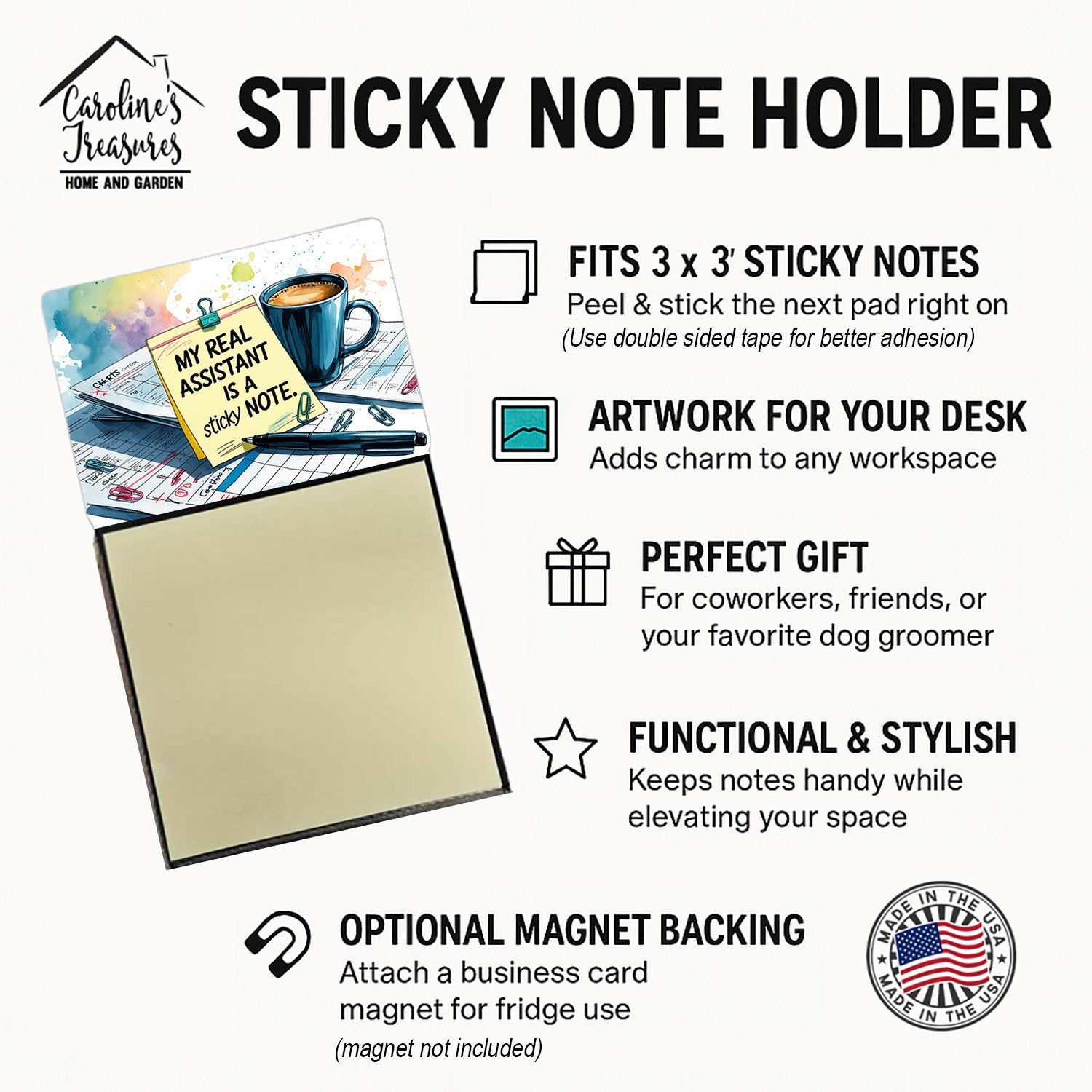 Bring a smile to your shift with this Funny Nurse Sticky Note Holder from Caroline’s Treasures. Featuring the saying - My real assistant is a sticky note, it’s the perfect blend of humor and practicality for nurses, nursing students, and healthcare staff. Keep your notes, patient reminders, or grocery lists in one convenient spot while adding a little personality to your workspace. Easy to Refill: Includes a starter pad of 3x3 sticky notes. When it’s time for a new pad, roll a small piece of tape (sticky side out) and place it on the back of the new pad. Press the pad firmly onto the base, and you’re ready to jot notes in seconds. The rigid base keeps your notes secure on any desk or workstation, and you can make it magnetic by adding a business card–sized magnet (sold separately) — perfect for lockers, refrigerators, or rolling carts. An ideal nurse gift for coworkers, nursing grads, nurse practitioners, and physician assistants, this dispenser is both functional and funny — a conversation starter and a stress-buster in the middle of a busy shift. Whether you’re charting, brainstorming, or just trying to remember to buy coffee, this little desk accessory will make you smile every time you use it.