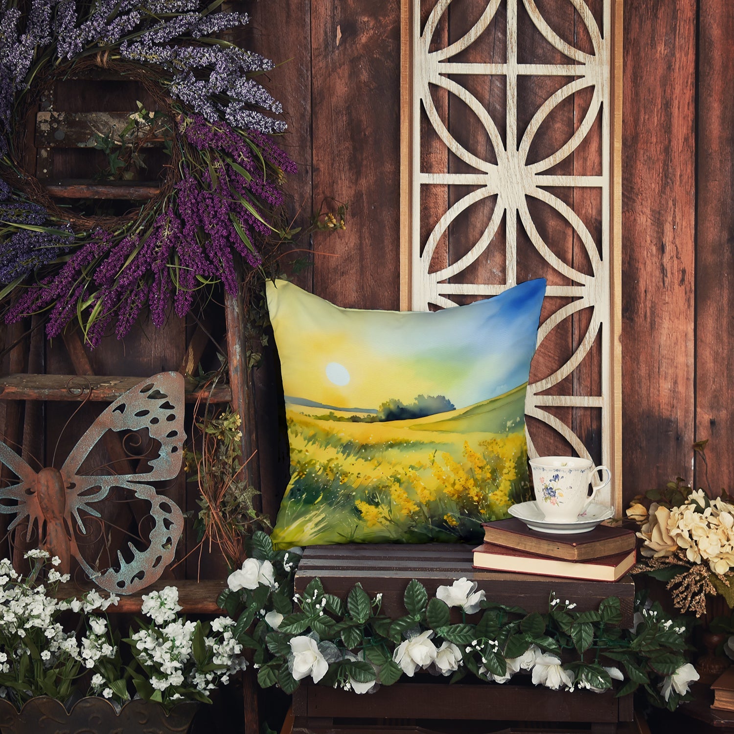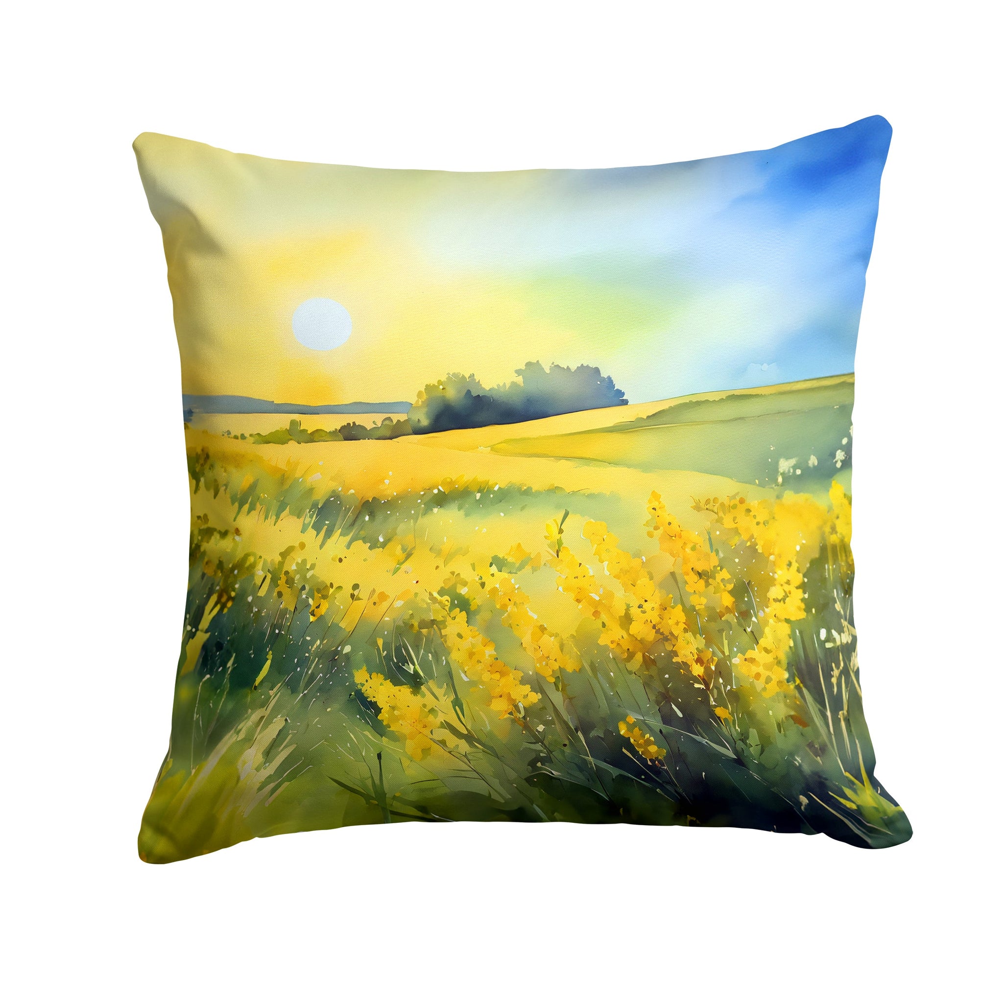 Throw Pillow featuring breed specific Nebraska Goldenrod artwork. Revitalize your outdoor or indoor living space with Caroline's Treasures 18x18 Fabric Decorative Pillow. With a generously sized dimension of approximately 18 inches by 18 inches, this pillow makes a comfortable and aesthetic addition to any seating area. Made from a unique, water-resistant material developed by Caroline's Treasures, the pillow sham is 100% polyester fabric that's durable and ready to weather any condition. Its vibrant, full-color artwork will not fade over time as it is dyed with color-fast dyes. Whether you place it on your patio furniture, porch, veranda, or indoor couch, its soft canvas fabric ensures a cozy experience. The pillow is handcrafted in the United States, featuring a sham created from three pieces of fabric and a polyester insert for enduring shape and overstuffed comfort. Despite being robustly built to endure the outdoors, it is as soft and snug as your favorite indoor cushions. Please note, as all our pillows are handmade, sizes may vary slightly, adding to the charm of this unique decorative item.