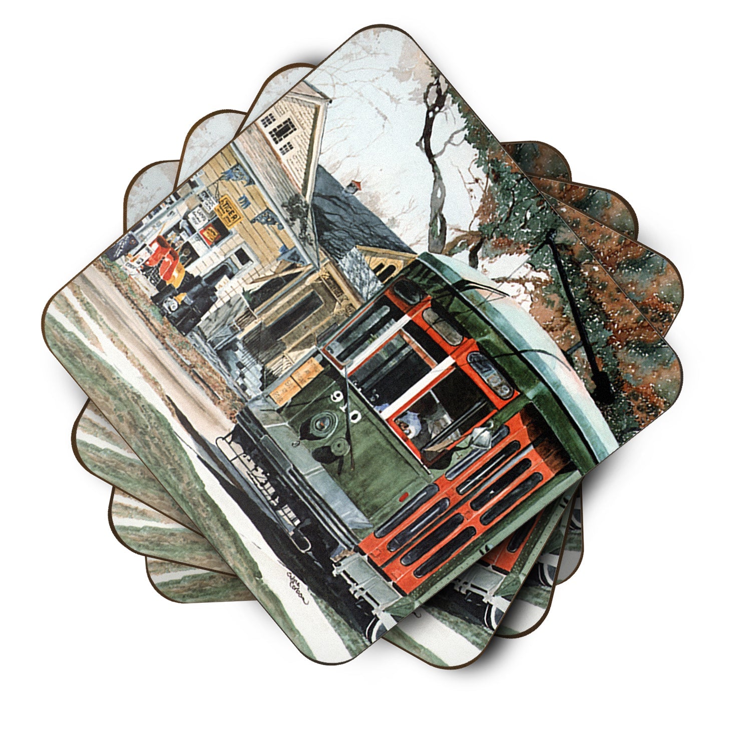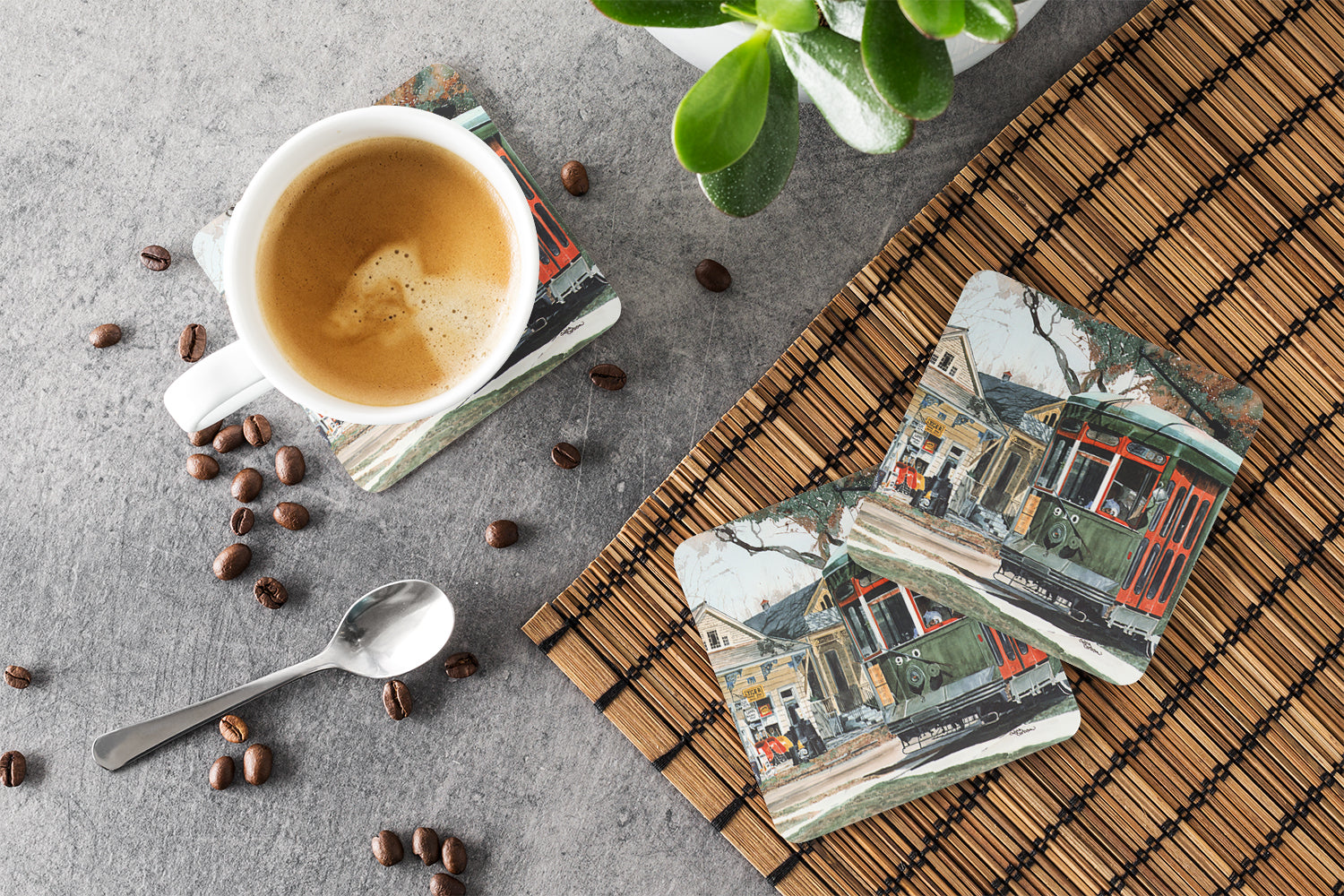 New Orleans Streetcar Coasters - Set of 4 Lightweight Foam, Absorbent Drink Coasters