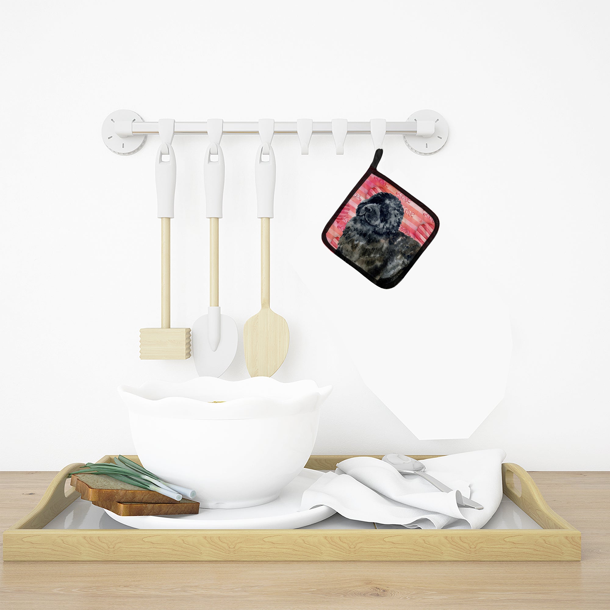 Decorate your space with our Valentine's Day Newfoundland artwork on a Pair of Pot Holders. A Pair of Pot Holders to match your kitchen decor. Made in the USA these are thick and functional. Full color artwork decorates the front polyester fabric of the hot pad and accented by a black trim. Use these at as a trivet for your Thanksgiving or Christmas tablescape. Filled with insulated fabric and quilted for durability. These colorful pot holders will make a great gift for your favorite home cook or executive chef. Each pot holder measures approximately 7 1/2 inches by 7 1/2 inches. A hanging tab is included.