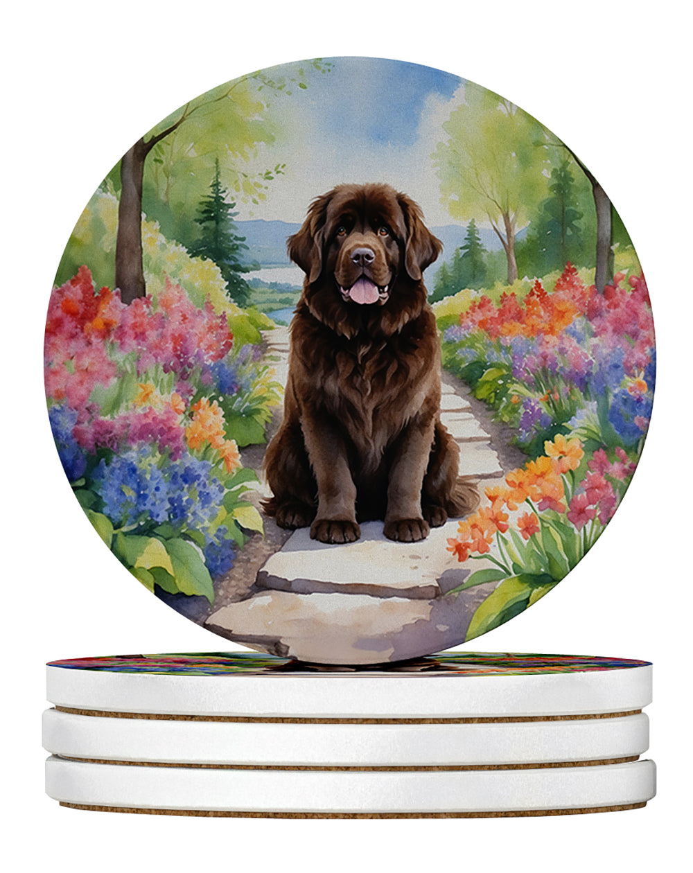 Large Sandstone Coasters Pack of 4 featuring breed specific Newfoundland artwork. Introducing Caroline's Treasures Large Sandstone Coasters Pack of 4, the perfect addition to your home decor. Each coaster measures nearly 4 inches and is made from absorbent sandstone with a cork backing. Designed and printed in the United States, these coasters feature artwork from Caroline's Treasures' talented artists. Protect your countertops and tables from hot and cold drink condensation with these absorbent coasters. They efficiently absorb moisture, ensuring your surfaces stay dry and clean. Choose from a wide range of designs to update and enhance your decor or give them as a thoughtful gift for any occasion. Cleaning is a breeze—simply wipe the coaster with a damp towel to remove any spills or stains. Each set comes in a brown gift box, making it ready to be wrapped for that special person in your life. These absorbent sandstone coasters also make an excellent housewarming gift, providing both practicality and style. Celebrate birthdays, Mother's Day, Father's Day, Thanksgiving, Christmas, Teacher's Appreciation Day, or simply show someone you care with these versatile and charming coasters. Caroline's Treasures Large Sandstone Coasters Pack of 4 is the perfect happy gift for any occasion.