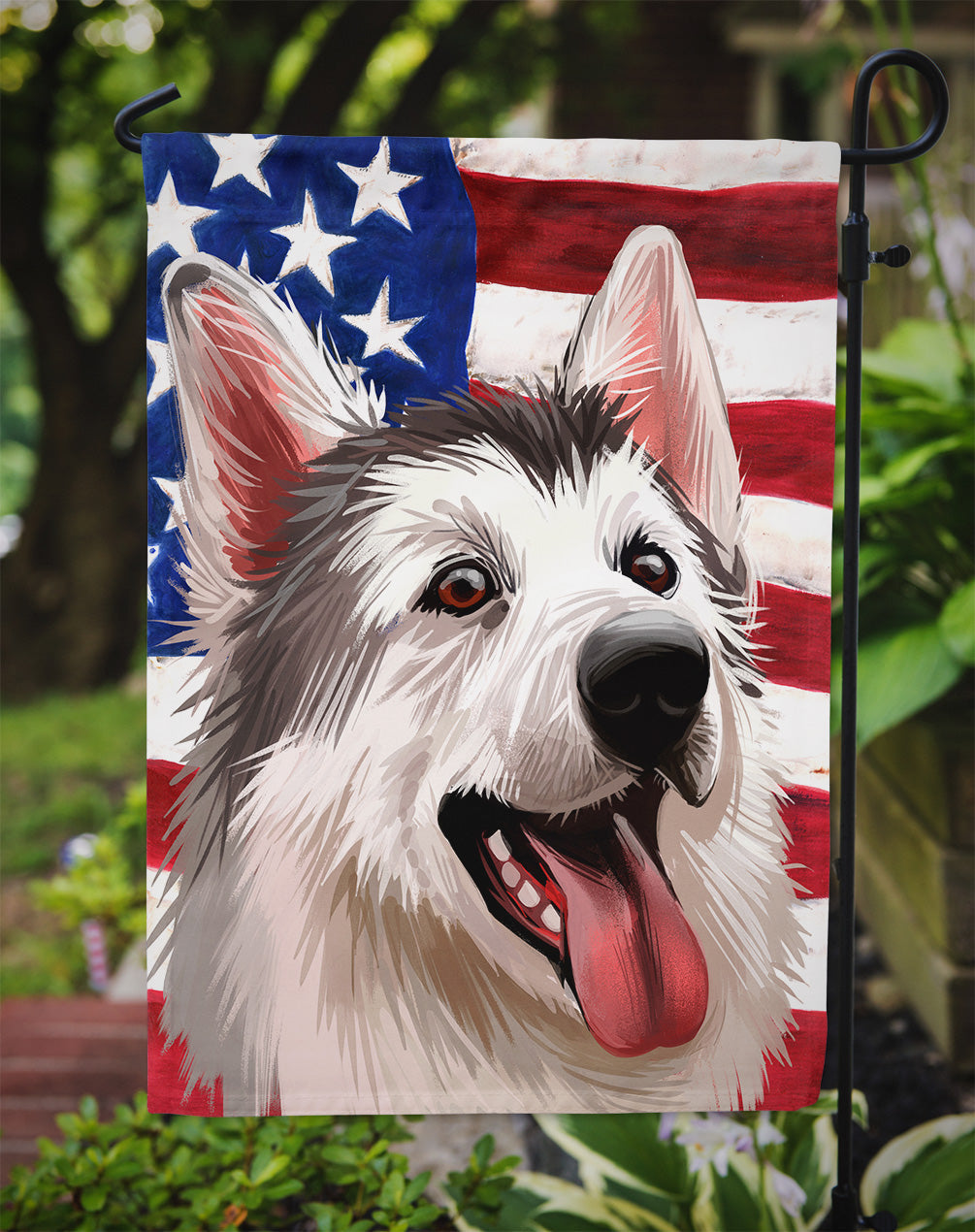 Decorate your space with our Northern Inuit Dog artwork on a Garden Flag. Enhance the beauty of your garden, patio, or yard with Caroline's Treasures Decorative Garden Flag, proudly made in the USA. Crafted from two pieces of thick, double-sided polyester fabric, this 2-ply garden flag is designed to withstand various weather conditions, making it water-resistant and weatherproof. Featuring correctly readable words on both sides, this garden flag offers a delightful visual experience from any angle. With its heavier weight, it stands out among other garden flags, ensuring stability and durability even in wind, rain, and snow. Measuring approximately 11 1/4 inches by 15 1/2 inches, this flag allows you to personalize your outdoor decor. It comes with a 1 1/2-inch sleeve sewn in, allowing easy attachment to any standard garden flag stand or garden size porch hanger (sold separately). Make a statement in your outdoor space with Caroline's Treasures Decorative Garden Flag, a vibrant and high-quality flag that adds color and personality to your surroundings. Proudly made in the USA, it's a symbol of quality craftsmanship and attention to detail.
