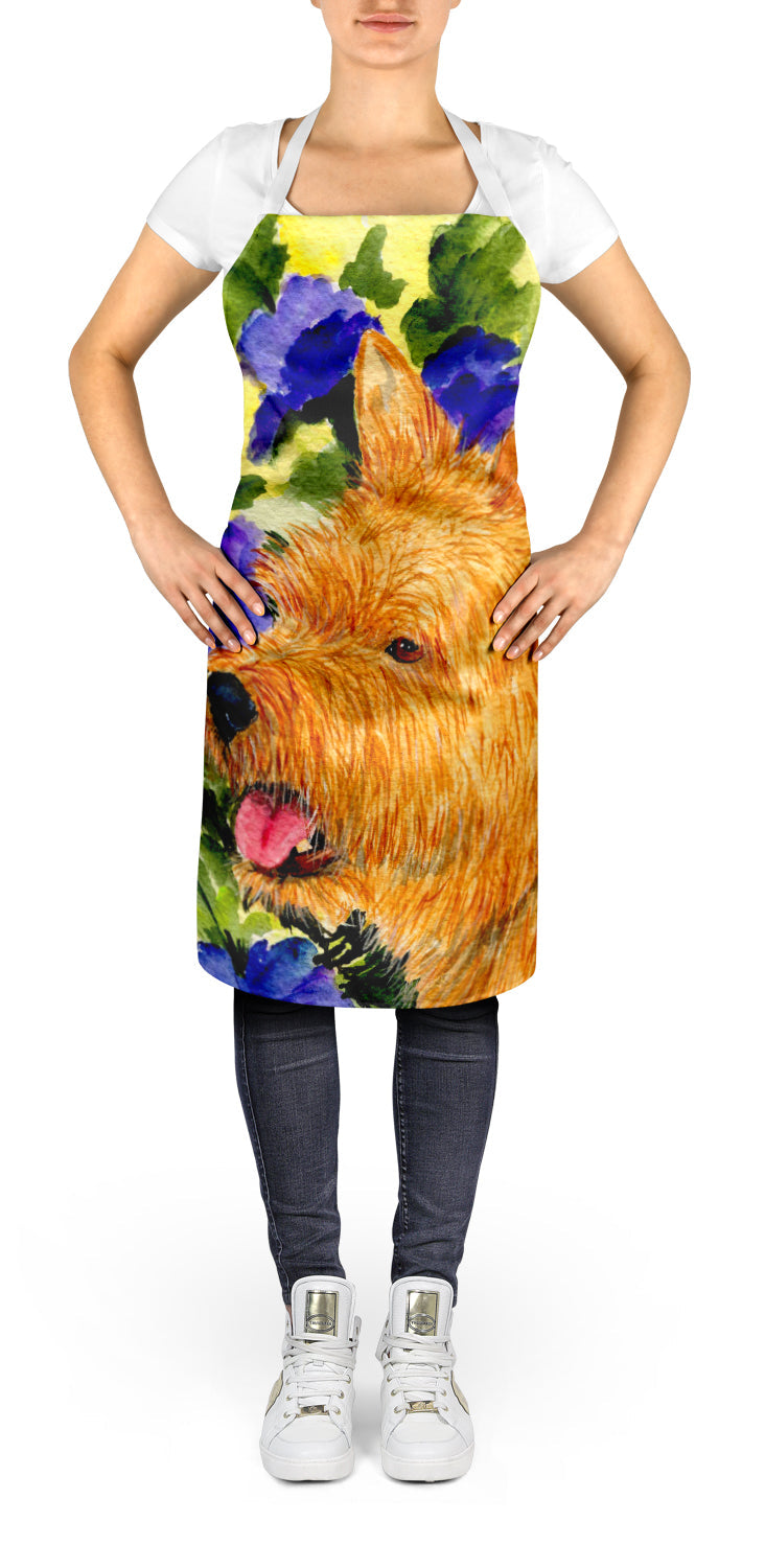 Decorate your space with our Norwich Terrier artwork on a Apron. Elevate your cooking, baking, and grilling experiences with our versatile Kitchen or BBQ Apron. This Bib Style apron isn't just limited to culinary activities - it also serves as an excellent baking apron, artist apron, server apron, gardening apron, or even a dog grooming apron. The apron showcases vibrant full-color artwork contributed by one of our talented artists, bringing a dash of style to your daily tasks. With dimensions of approximately 27"W x 30"H, it provides ample coverage to protect your clothing from spills and splashes. Our apron is meticulously crafted from 100% Ultra Spun Polyester, known for its durability and lightweight nature. The apron comes with white tie straps, ensuring a comfortable and adjustable fit for all. It's a perfect choice for kitchen apron enthusiasts, whether you are a woman or a man. Designed for easy maintenance, this apron is fully machine washable. The quick-drying polyester material actively reduces staining, keeping your apron looking fresh and new for longer. Our beautifully designed apron isn't just a functional kitchen accessory - it's a fashion statement in the culinary world!