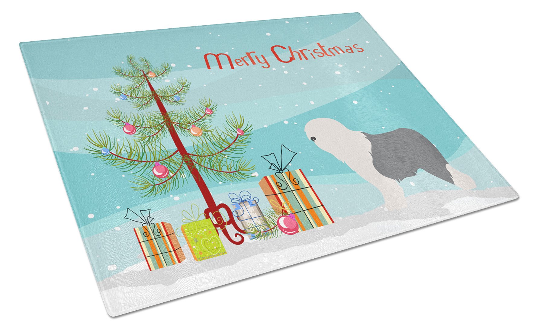 Old English Sheepdog Bobtail Christmas Glass Cutting Boards – Durable, Decorative Kitchen Art Large BB8456LCB