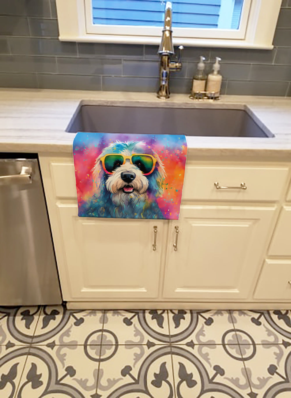 Old English Sheepdog Hippie Dawg Kitchen Towel