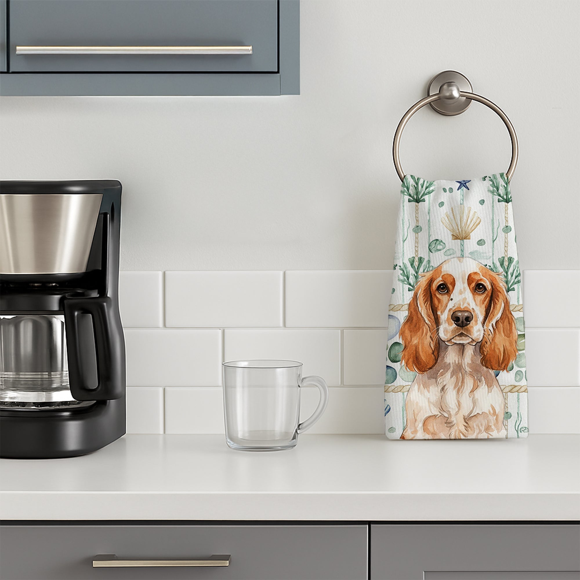 Orange Roan English Cocker Spaniel Coastal Sea Glass Kitchen Towel
