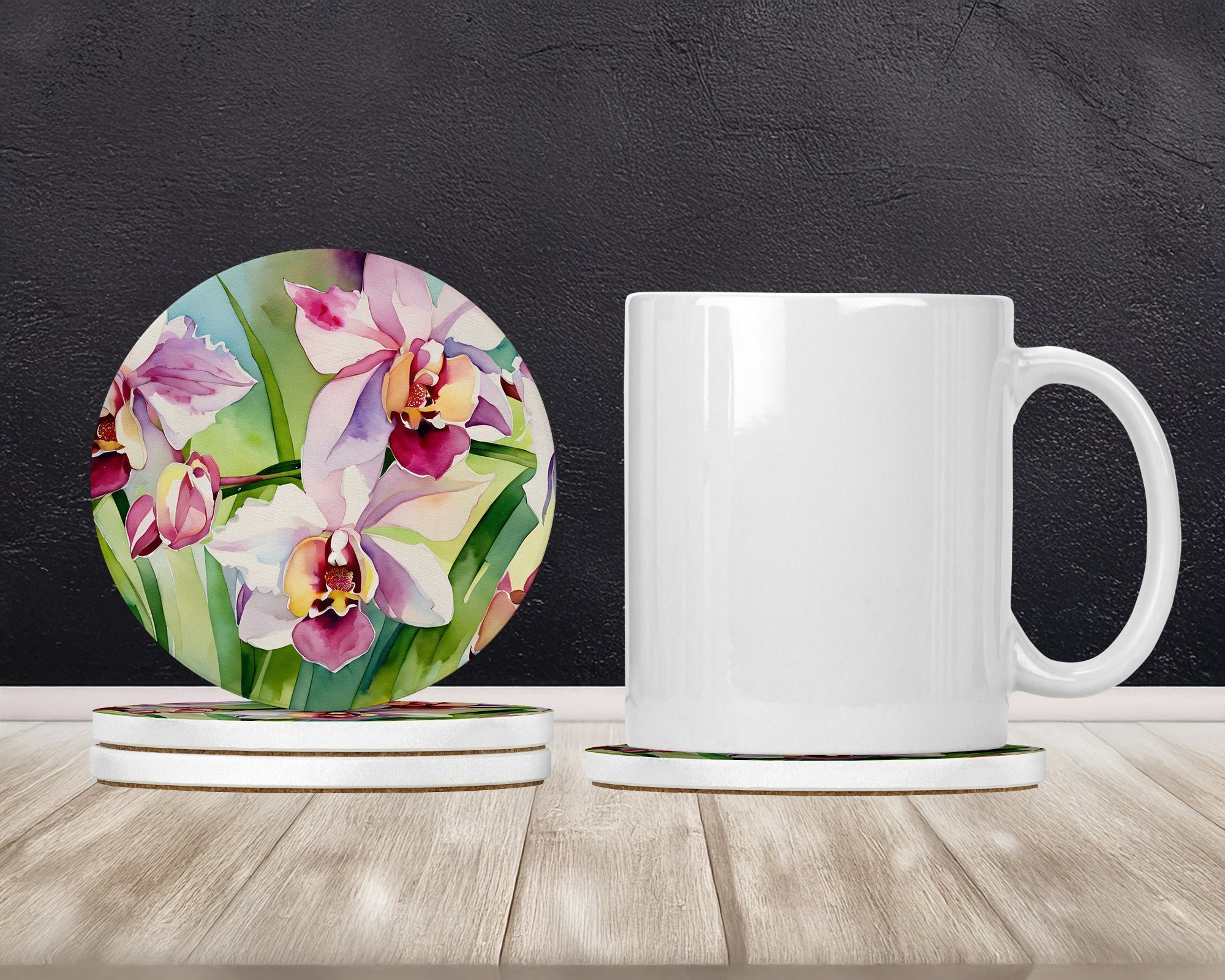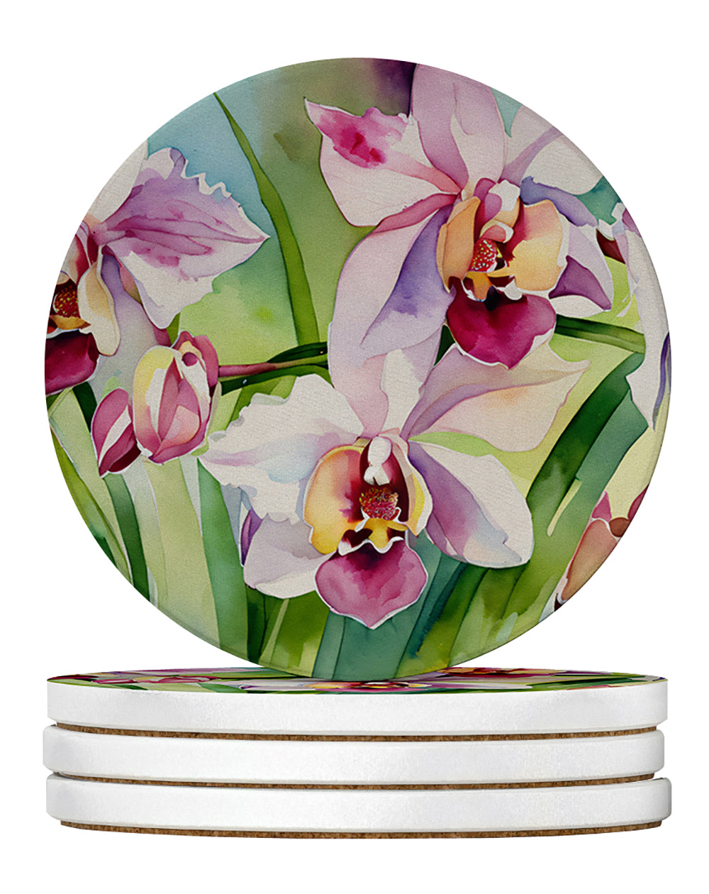 Orchids in Watercolor Large Sandstone Coasters Pack of 4