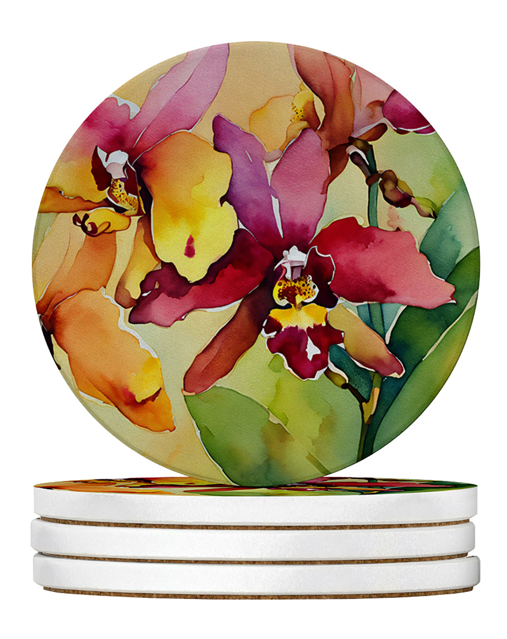 Large Sandstone Coasters Pack of 4 featuring breed specific Orchids artwork. Introducing Caroline's Treasures Large Sandstone Coasters Pack of 4, the perfect addition to your home decor. Each coaster measures nearly 4 inches and is made from absorbent sandstone with a cork backing. Designed and printed in the United States, these coasters feature artwork from Caroline's Treasures' talented artists. Protect your countertops and tables from hot and cold drink condensation with these absorbent coasters. They efficiently absorb moisture, ensuring your surfaces stay dry and clean. Choose from a wide range of designs to update and enhance your decor or give them as a thoughtful gift for any occasion. Cleaning is a breeze—simply wipe the coaster with a damp towel to remove any spills or stains. Each set comes in a brown gift box, making it ready to be wrapped for that special person in your life. These absorbent sandstone coasters also make an excellent housewarming gift, providing both practicality and style. Celebrate birthdays, Mother's Day, Father's Day, Thanksgiving, Christmas, Teacher's Appreciation Day, or simply show someone you care with these versatile and charming coasters. Caroline's Treasures Large Sandstone Coasters Pack of 4 is the perfect happy gift for any occasion.