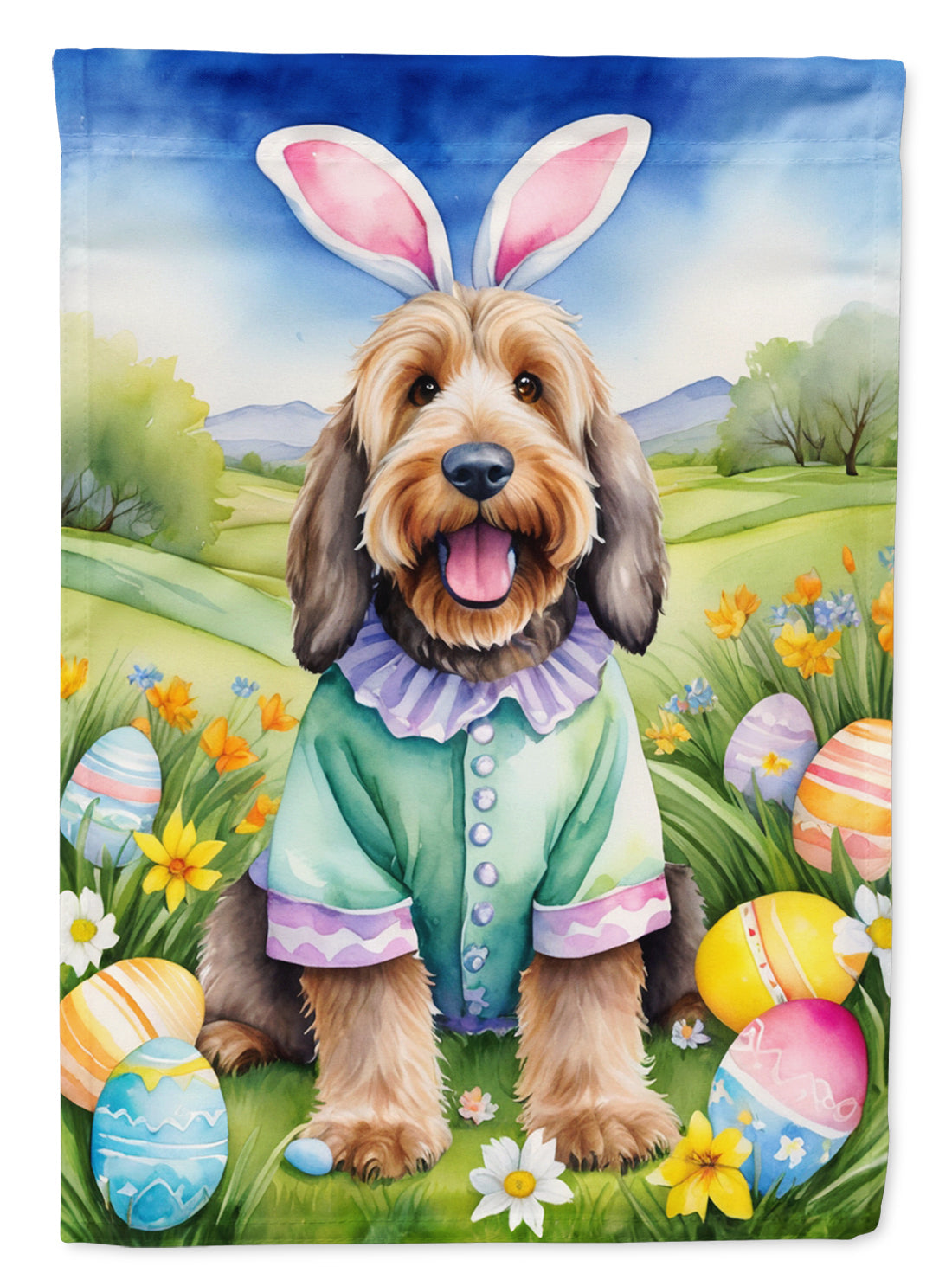 Decorate your space with our Easter Otterhound artwork on a Large Flag. Presenting our Heavy Duty Polyester House Size Decorative Sleeve Pole Flag, a vibrant addition to enhance the aesthetic appeal of your home. This large decorative flag, measuring approximately 28 x 40 inches, offers ample coverage and visibility. Each flag is meticulously sewn and made individually, ensuring a unique piece that may slightly vary in size. It's a sleeve pole flag, designed to fit a standard decorative flag pole effortlessly. Please note that the flag pole and bracket are not included and should be purchased separately. What sets our flag apart is its dual-sided print. The design is mirrored on both sides of the fabric, allowing for uniform visibility regardless of the angle. Printed in full color, our flag showcases vibrant hues that truly stand out. To ensure lasting vibrancy and durability, the dyes are heat-set into the fabric. This ensures your flag remains bright and captivating through various weather conditions. Elevate the look of your home with our Heavy Duty Polyester House Size Decorative Sleeve Pole Flag!