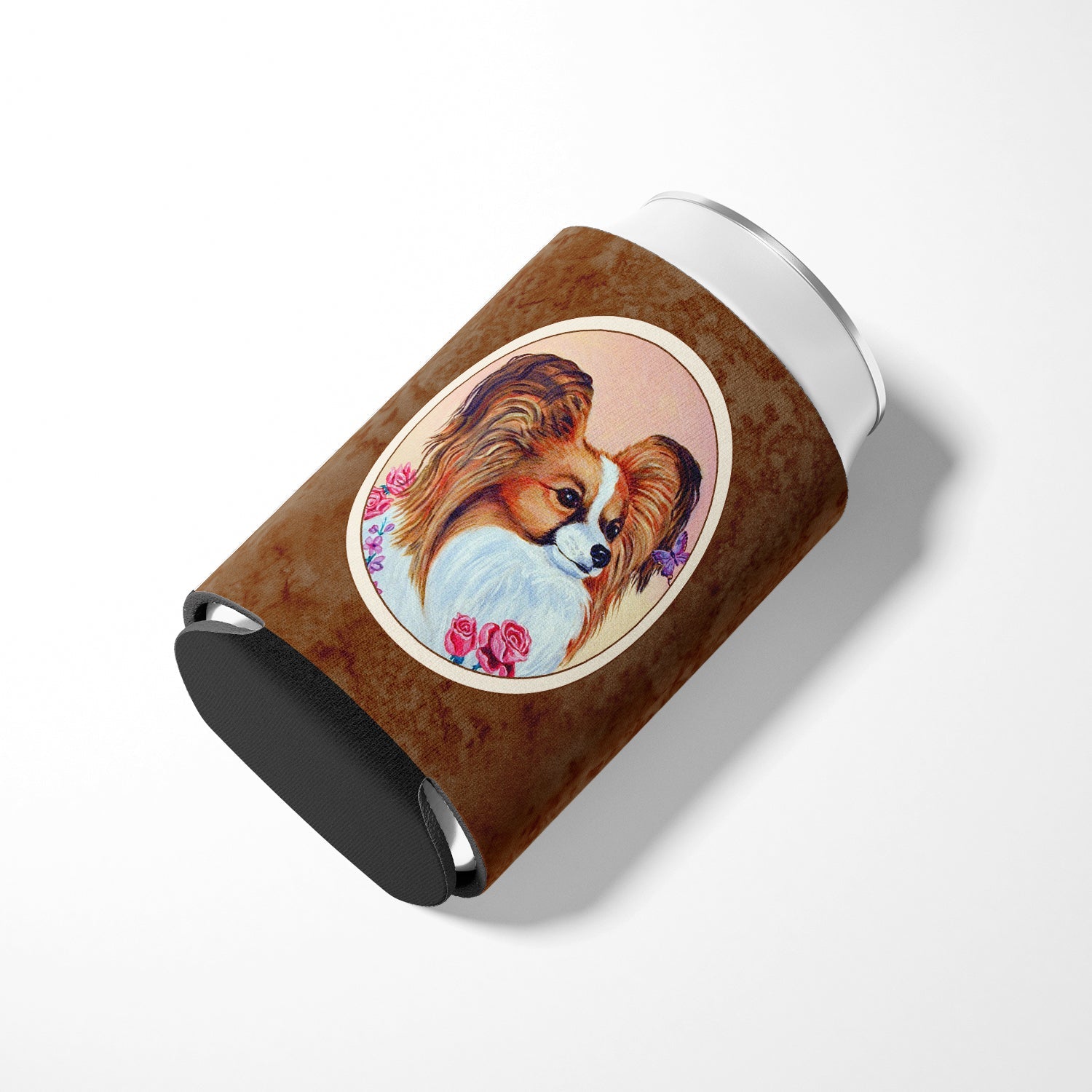 Decorate your space with our Papillon artwork on a Hugger. Introducing our Can or Bottle Hugger, a must-have accessory for your beverage enjoyment. Designed to perfectly fit any standard 12-ounce can, this can cooler is the ideal companion to keep your soda, beer, or any drink of your choice at the perfect temperature. Our can hugger is not just functional, it's a work of art. Featuring full-color artwork that's permanently dyed into the foam, this hugger promises a design that's fade-resistant and made to last, making your beverage stand out in style. The design isn't silk-screened, which ensures the vibrancy of the colors, offering you a long-lasting, appealing aesthetic. What sets our can hugger apart is its high-quality foam fabric, which is not only durable but also machine washable for easy maintenance. Whether you call it a huggie, can coolie, can cozie, or beer holder, this drink sleeve brings style and function together. Proudly designed, printed, and sewn in the USA, our Can or Bottle Hugger is an ideal addition to your beverage experience. Match it with one of our insulated coolers for a complete gift set, adding flair and convenience to your drink enjoyment.