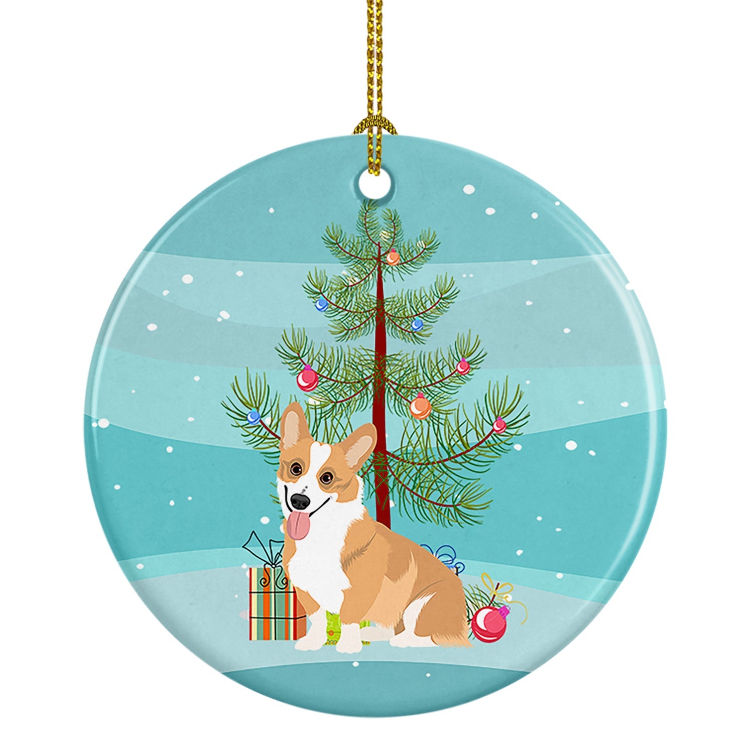 Ceramic Ornament featuring breed specific Corgi artwork. Celebrate Christmas with this Christmas Ornament. Add a touch of personalized charm to your Christmas tree this holiday season with our Ceramic Ornament. Measuring 2.8125 inches in diameter, this round porcelain ornament beautifully reflects your festive lights, enhancing your holiday decor. The gloss surface sets off the vibrant, full-color artwork contributed by one of our talented artists, bringing a pop of color and joy to your tree. This Ceramic Ornament doesn't stop at being merely decorative. The white back is designed for personalization. Write a heartfelt message, mark a special year, or inscribe a date with a paint pen or a permanent marker to create a treasured memento. Please ensure you allow any personalization to dry thoroughly before handling to maintain the pristine finish. Included with the ornament is a delicate gold cord for easy hanging. Made in the USA, this Ceramic Ornament makes an exceptional gift for a pet sitter, teacher, family member, or anyone you wish to share a little Christmas magic with. With its blend of style, charm, and personal touch, it's a meaningful addition to any Christmas tree.