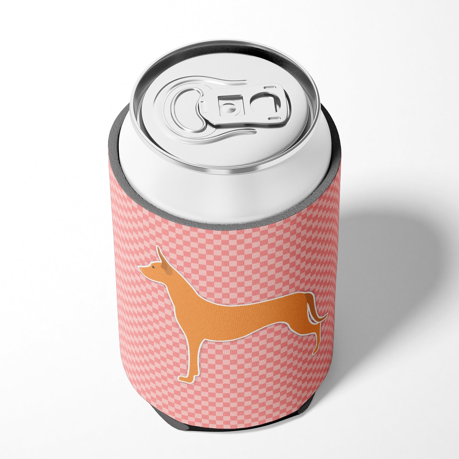 Pharaoh Hound Checkerboard Pink Can or Bottle Hugger BB3588CC