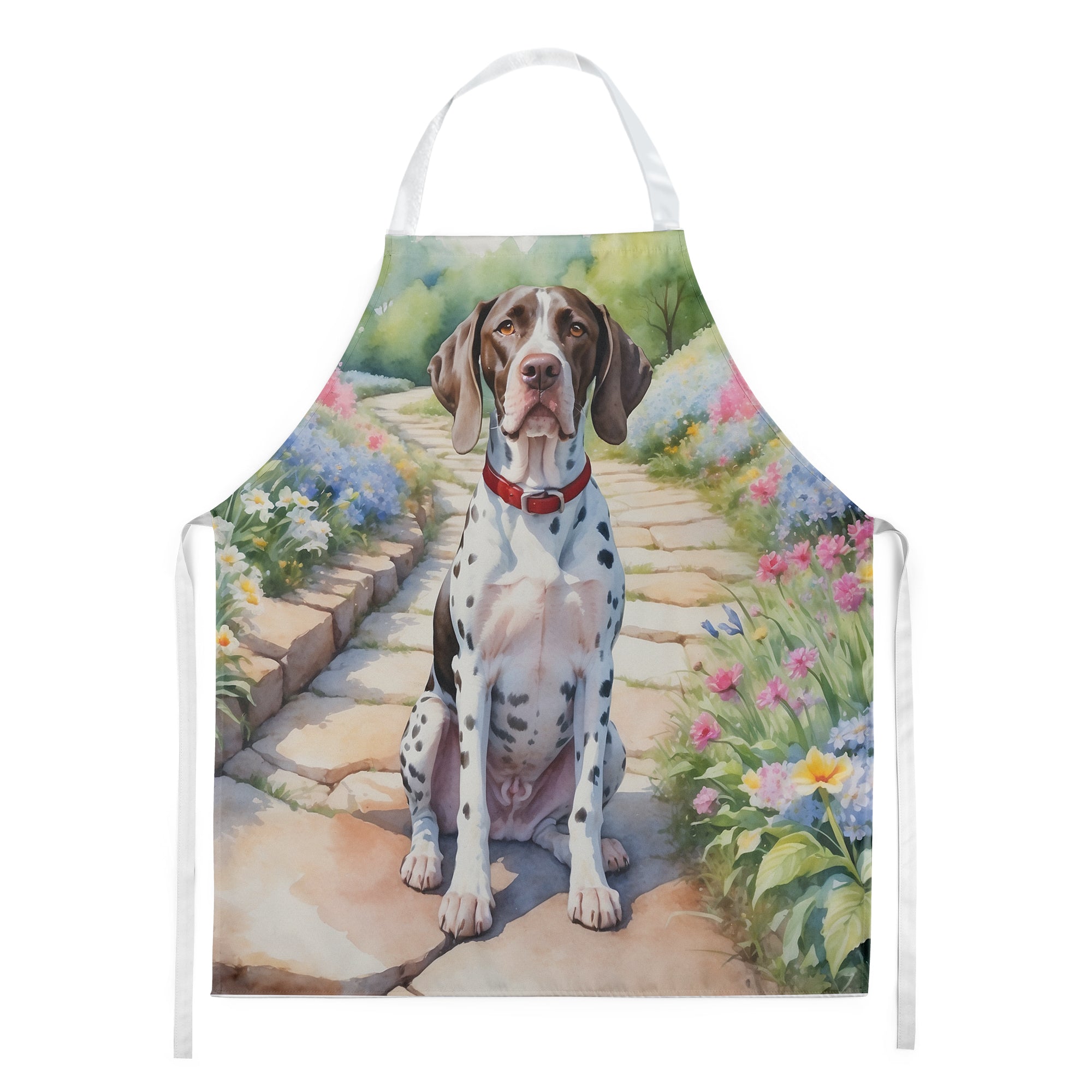 Decorate your space with our Pointer artwork on a Apron. Bring a bit of Spring into your home with a Spring Apron. Elevate your cooking, baking, and grilling experiences with our versatile Kitchen or BBQ Apron. This Bib Style apron isn't just limited to culinary activities - it also serves as an excellent baking apron, artist apron, server apron, gardening apron, or even a dog grooming apron. The apron showcases vibrant full-color artwork contributed by one of our talented artists, bringing a dash of style to your daily tasks. With dimensions of approximately 27"W x 30"H, it provides ample coverage to protect your clothing from spills and splashes. Our apron is meticulously crafted from 100% Ultra Spun Polyester, known for its durability and lightweight nature. The apron comes with white tie straps, ensuring a comfortable and adjustable fit for all. It's a perfect choice for kitchen apron enthusiasts, whether you are a woman or a man. Designed for easy maintenance, this apron is fully machine washable. The quick-drying polyester material actively reduces staining, keeping your apron looking fresh and new for longer. Our beautifully designed apron isn't just a functional kitchen accessory - it's a fashion statement in the culinary world!