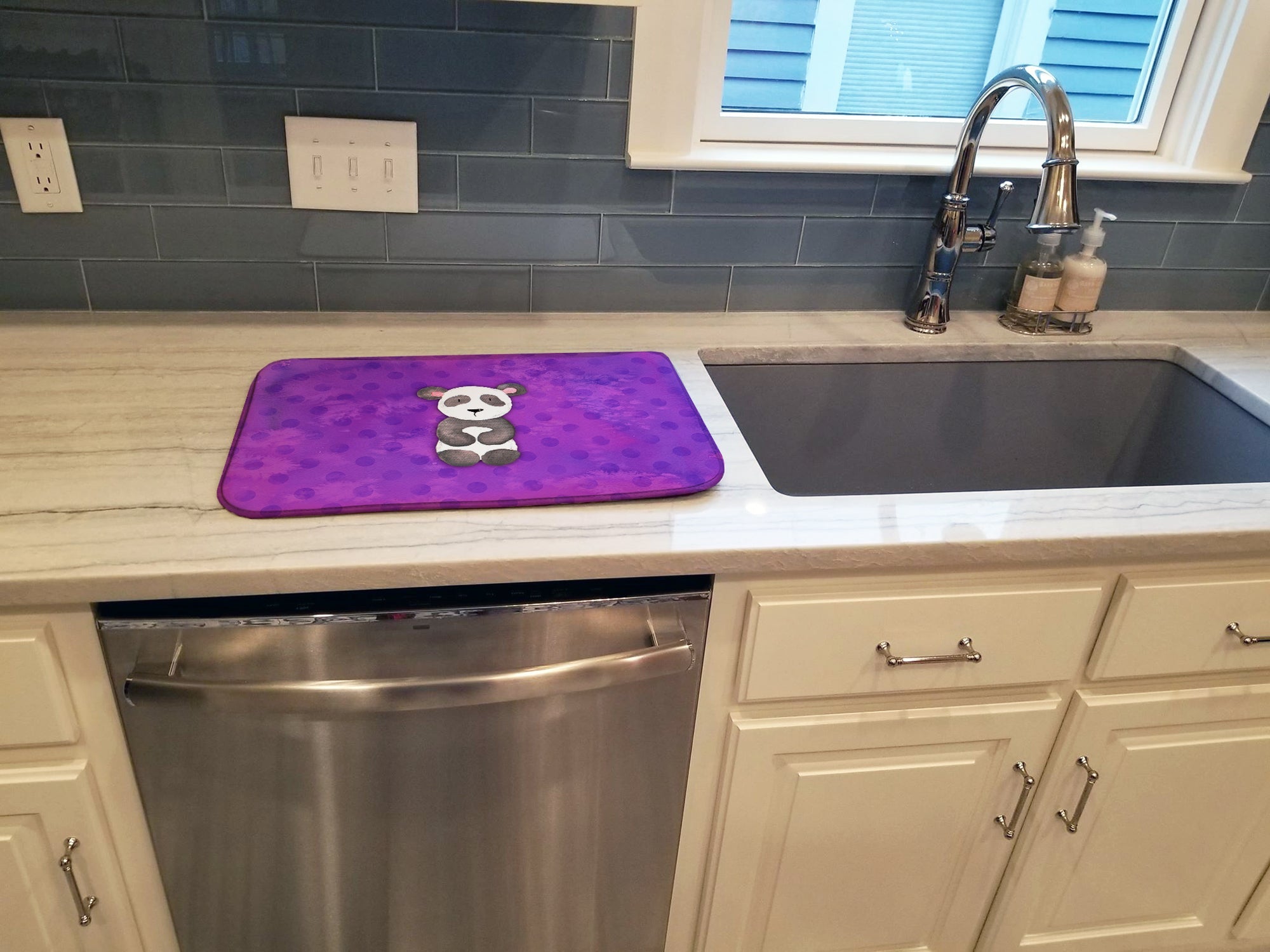 Decorate your space with our Panda Bear artwork on a Dish Drying Mat. Say goodbye to messy countertops and soggy dish towels with our innovative dish drying mat. Our high-quality dish drying pad is designed to keep your countertops dry while offering a stylish and efficient solution. Whether you're air drying dishes, glasses, stemware, silverware, pots, pans, bottles, or even fruits and vegetables, our dish mat is the perfect choice. The 14 inches x 22 inches size fits most counters and dish drying racks, and the non-slip design ensures stability. Made with water-absorbent polyester and a polyurethane foam insert, our dish drying mat is not only functional but also durable. It's machine washable and printed in the USA for long-lasting use. The beautiful artwork adds flair to your kitchen decor, making it a perfect housewarming gift or present for any occasion. Upgrade your kitchen experience with our absorbent and versatile dish drying mat.