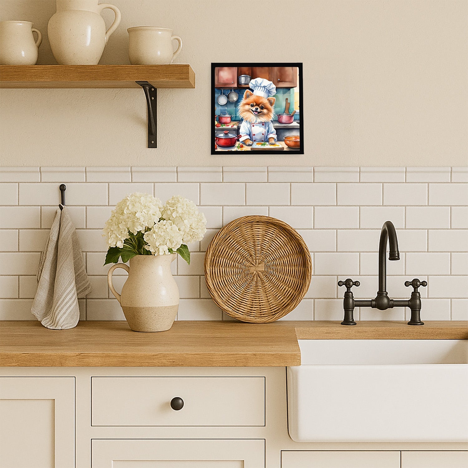Framed Metal Print featuring breed specific Pomeranian artwork. Looking for wall art that’s stylish, safe, and made to last? Our 8x8 Framed Metal Prints are designed with modern living in mind. Each piece features original artwork printed on durable aluminum, set in a sleek frame that measures 3/4 inch deep for a clean, contemporary finish. Unlike glass prints, these are lightweight, shatter-free, and family-safe. Perfect for kitchens, bathrooms, or covered porches where traditional décor might not hold up. The built-in sawtooth hanger molded into the back makes it easy to hang right out of the box—just use your own nails or screws. Cleaning is simple too: a quick wipe with a damp cloth and mild soap keeps your artwork looking vibrant. Proudly made in Alabama, every print supports our community of artists while adding personality and charm to your home.