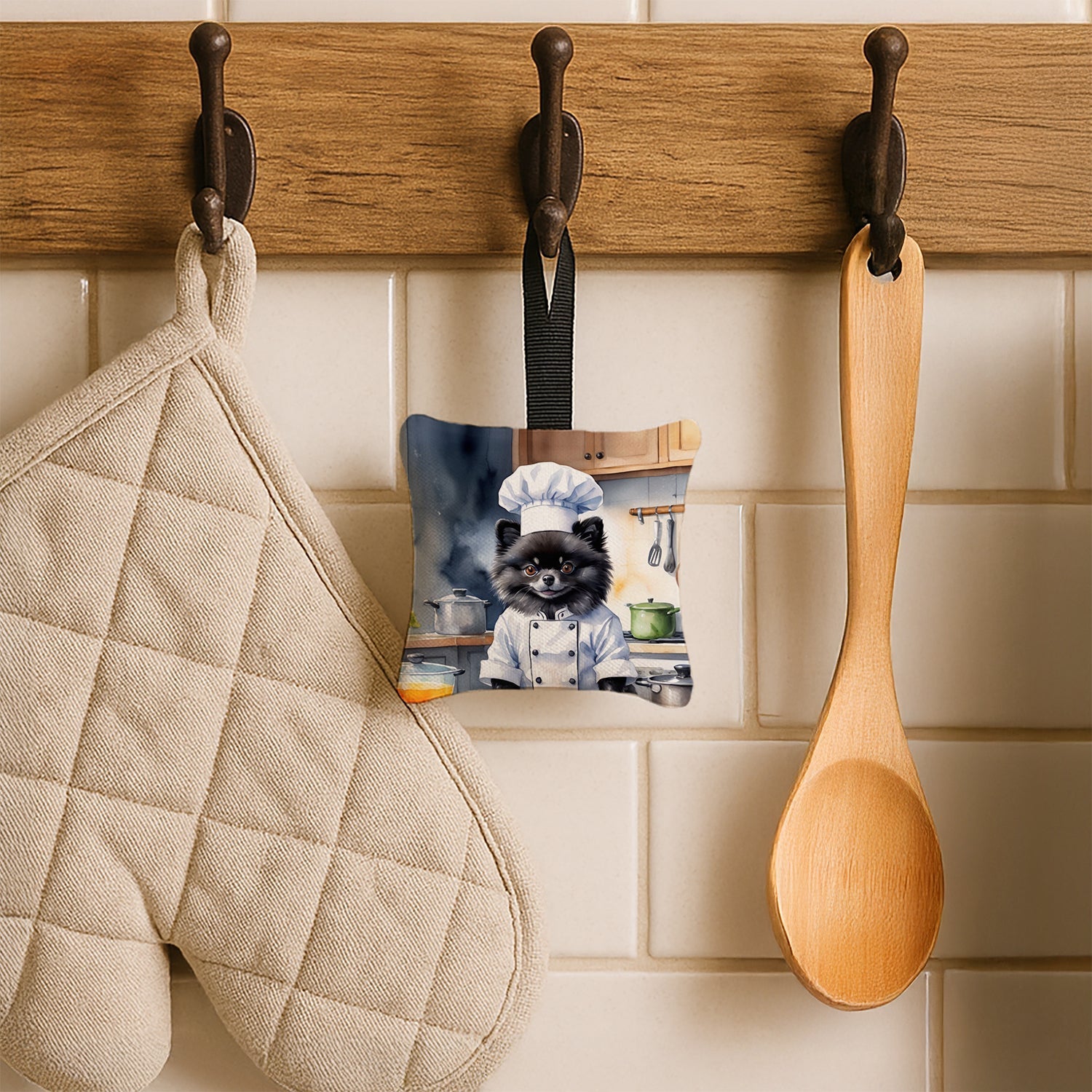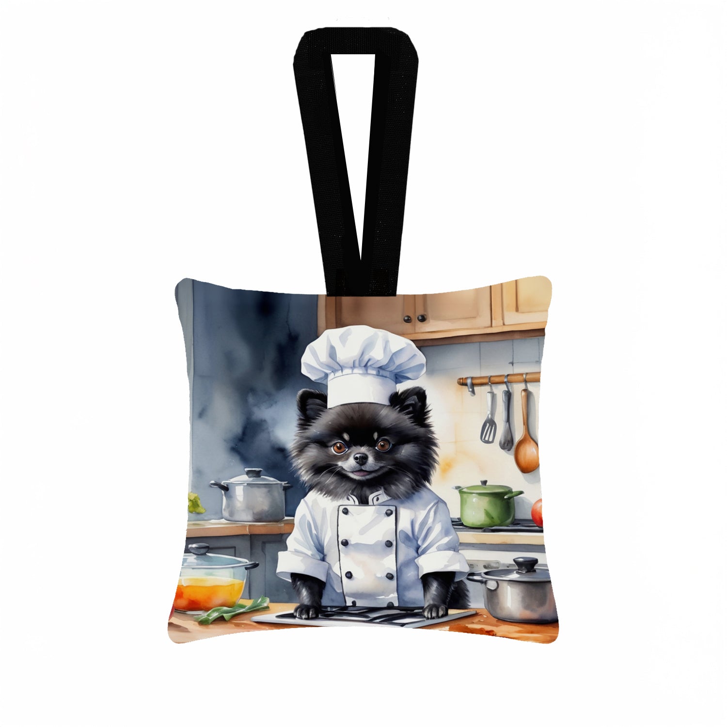 Pomeranian The Chef Hanging Square Fabric Ornament 3.5 × 3.5