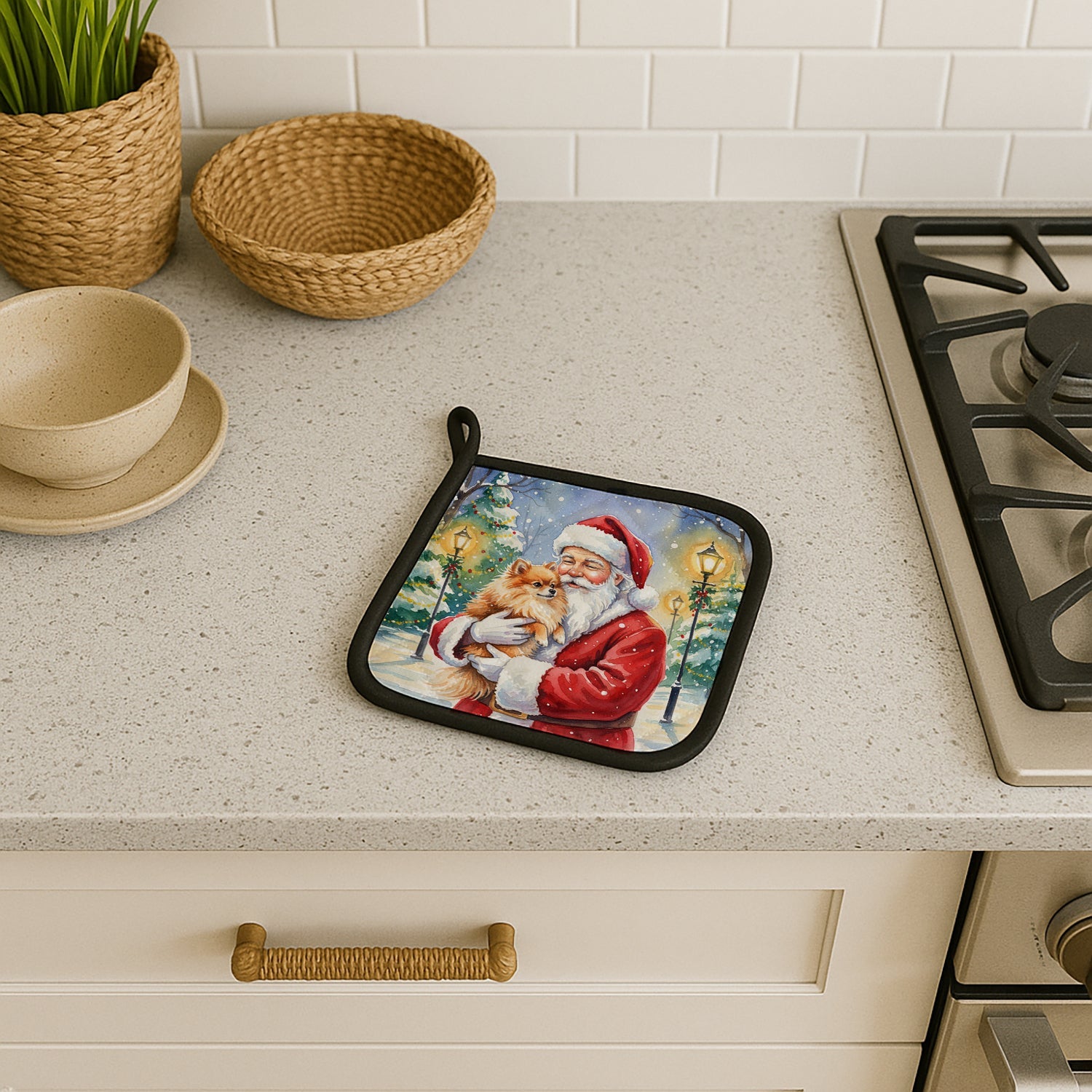 Pair of Pot Holders featuring breed specific Pomeranian artwork. Celebrate Christmas with this Christmas Pair of Pot Holders. Add warmth, personality, and function to your kitchen with our Vegetables Pot Holder Pair. Each set includes two quilted hot pads, featuring original full-color watercolor artwork on a soft polyester front accented by black trim. Crafted with multiple layers for performance: Top Layer: Vibrant artwork permanently dyed into polyester fabric. Middle Layer: US-manufactured insulated material with breathable polyester fibers and a reflective metalized film that reflects heat back to its source. Bottom Layer: A silver heat-resistant backing for extra protection. Each pot holder measures 7.5" x 7.5", includes a hanging tab, and is quilted for durability. Use them to protect your hands, countertops, and tabletops — or as decorative trivets for Thanksgiving, Christmas, or everyday meals.