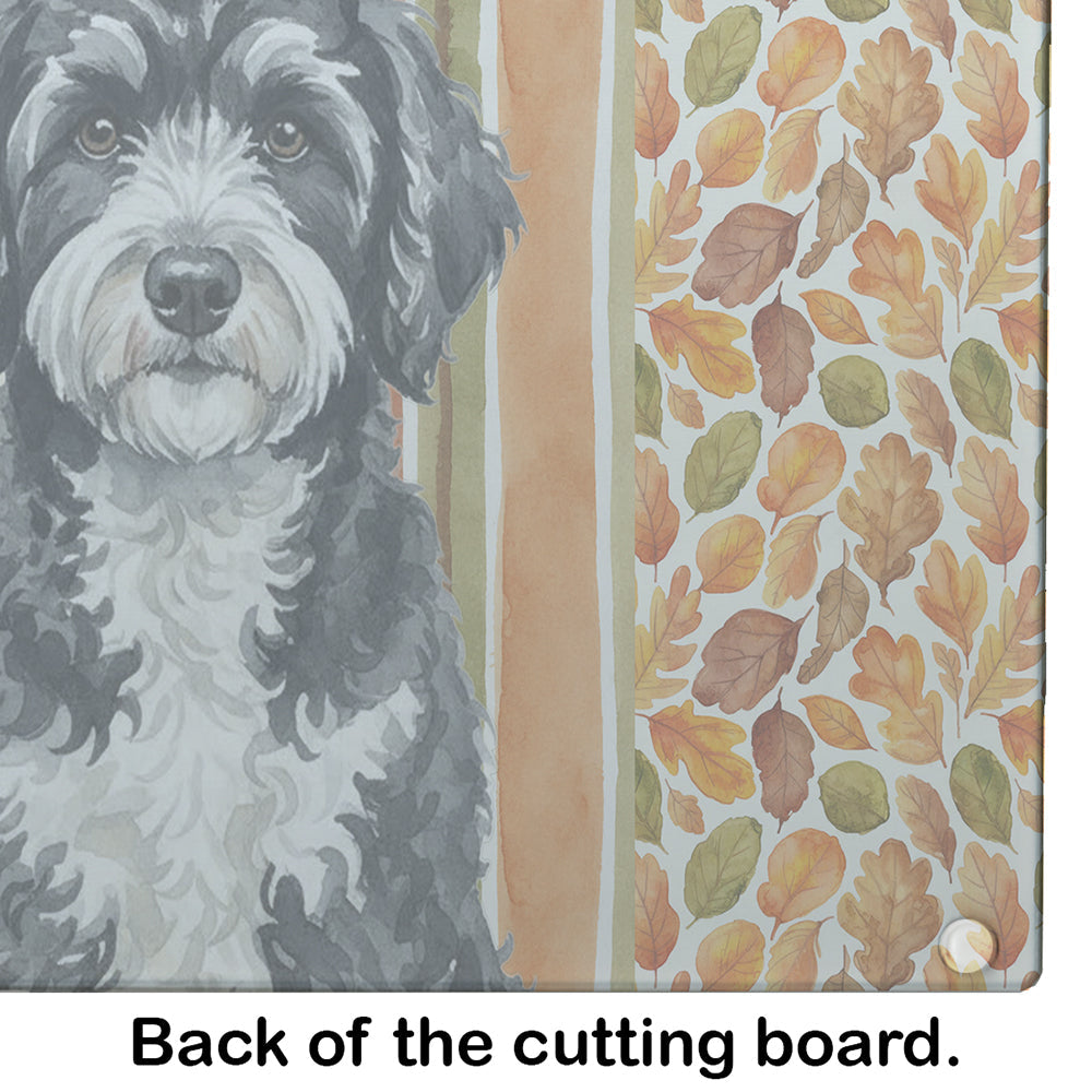 Glass Cutting Board featuring breed specific Portuguese Water Dog artwork. Celebrate Thanksgiving with this Thanksgiving Cutting Board. Introduce your kitchen to the vibrant, large Decorative Glass Cutting Board from Caroline's Treasures. Crafted from resilient tempered glass, this board is not only a utilitarian necessity but also a colorful art piece. With its generous dimensions of 15 inches in height and 12 inches in length, it offers ample space for all your cutting needs. Every piece showcases captivating artwork from distinguished artists, bringing an aesthetic edge to your kitchen. Beyond its attractive design, this cutting board ensures your countertop stays pristine and unscathed, owing to its heat-resistant properties. Engineered with user convenience in mind, it features non-skid feet for stability, and rounded corners for additional safety. Its robust construction renders it virtually unbreakable, guaranteeing longevity. The board comes with protective feet bumpers, maintaining its position during use. This product is recommended to be hand washed only. Proudly printed and assembled in the United States, this cutting board exemplifies superior craftsmanship. With Caroline's Treasures' Decorative Glass Cutting Board, you're investing in a blend of functionality and artistic flair.