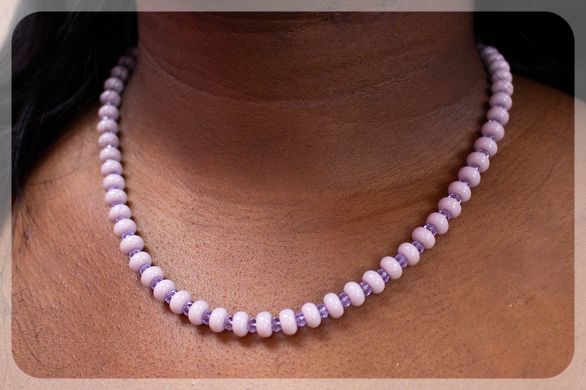 Discover the elegance of the Precious Purple Beaded Necklace, featuring beautiful purple-grey glass disc beads complemented by sparkling faceted purple beads. This captivating blend of hues adds depth and sophistication to your look, making it a perfect accessory to enhance both everyday wear and special occasions. Let this necklace bring a touch of refined charm to your jewelry collection.